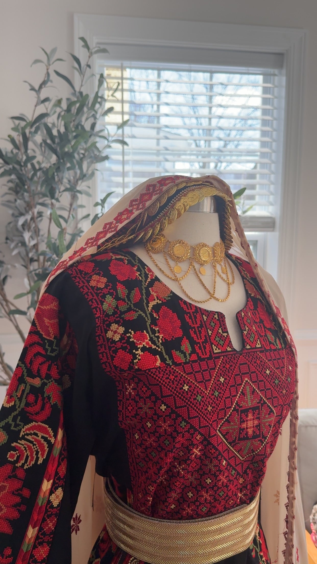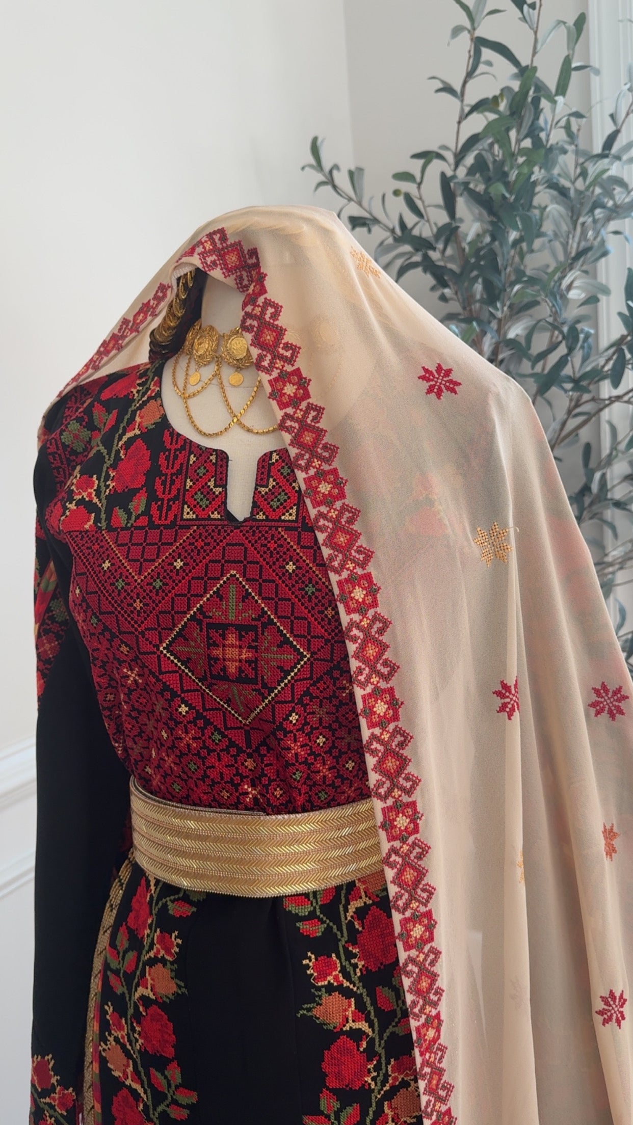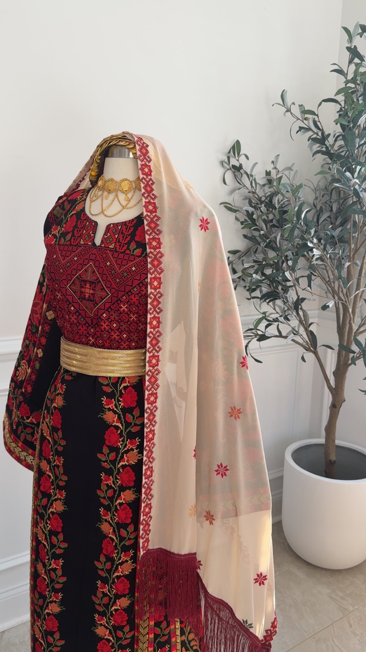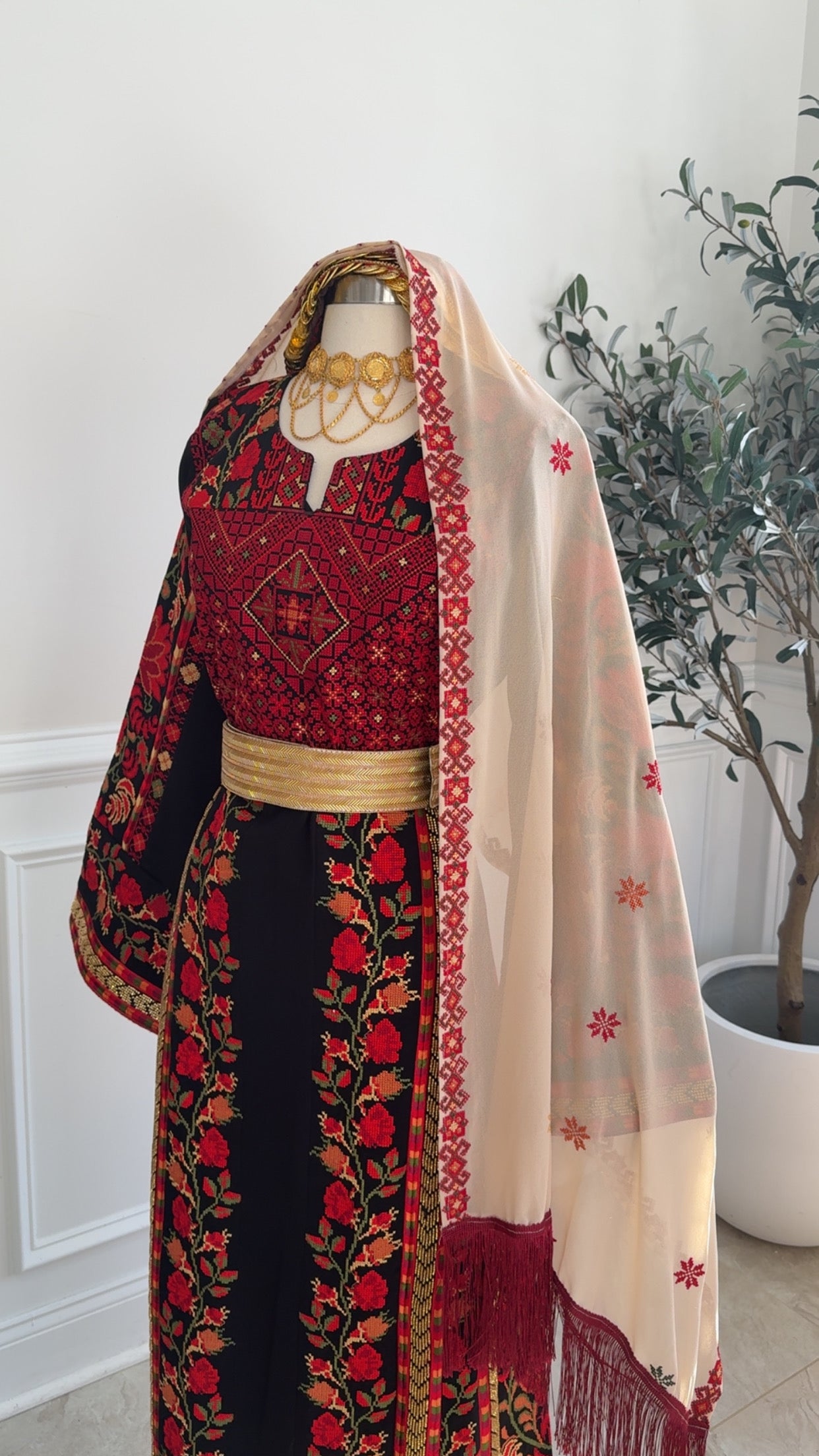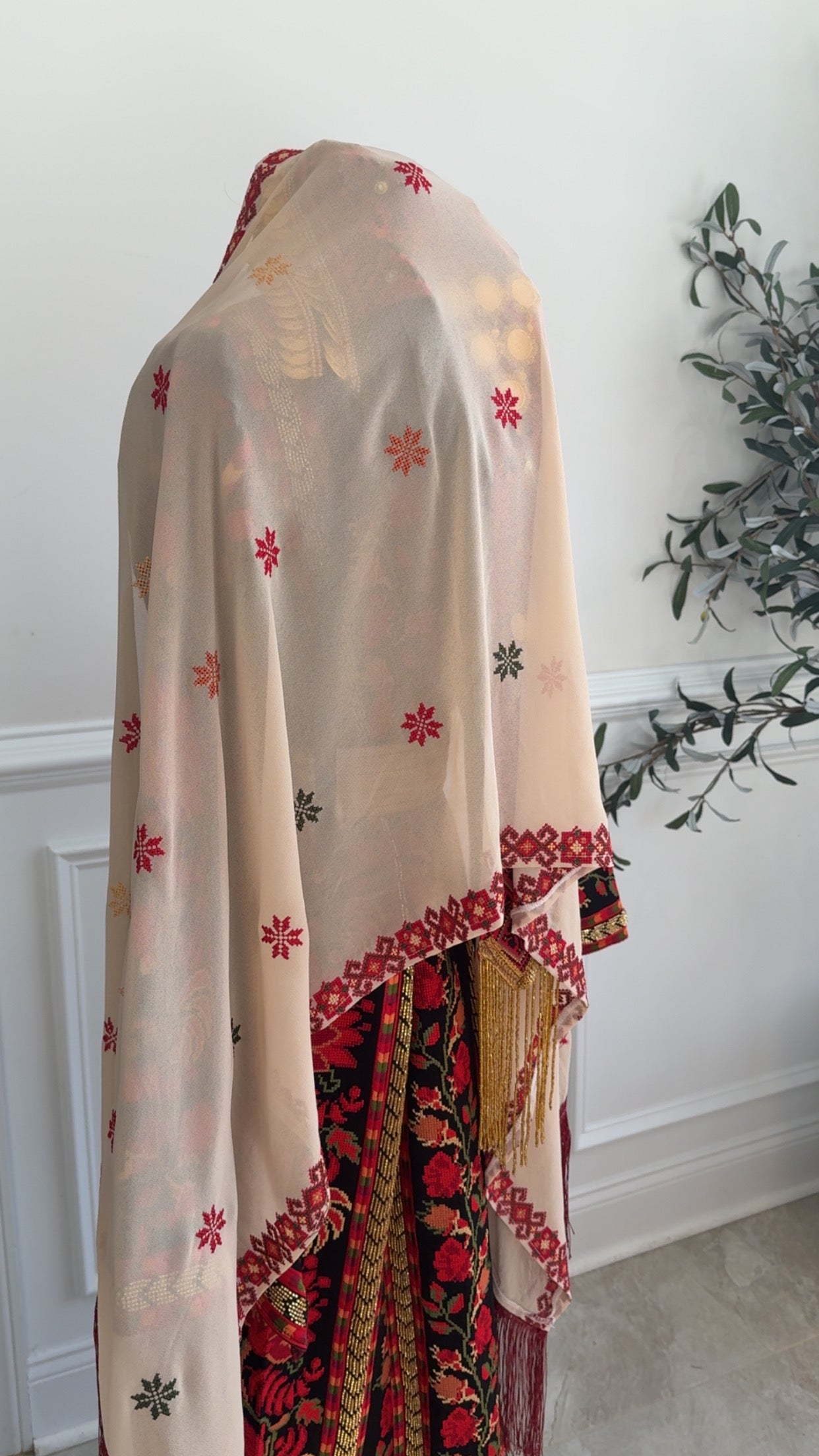 New beige with red Tatreez Khirka and maroon Hadab