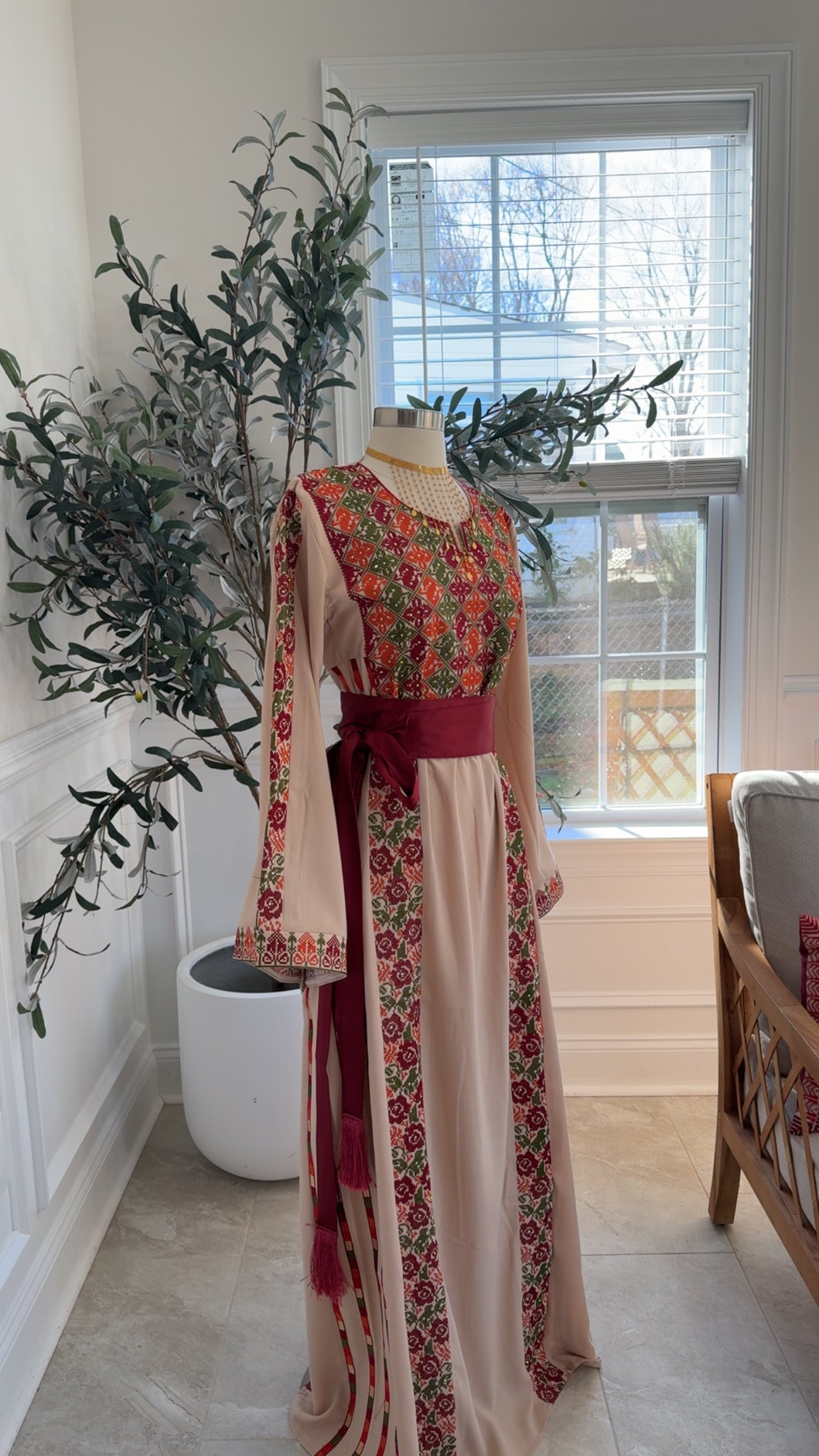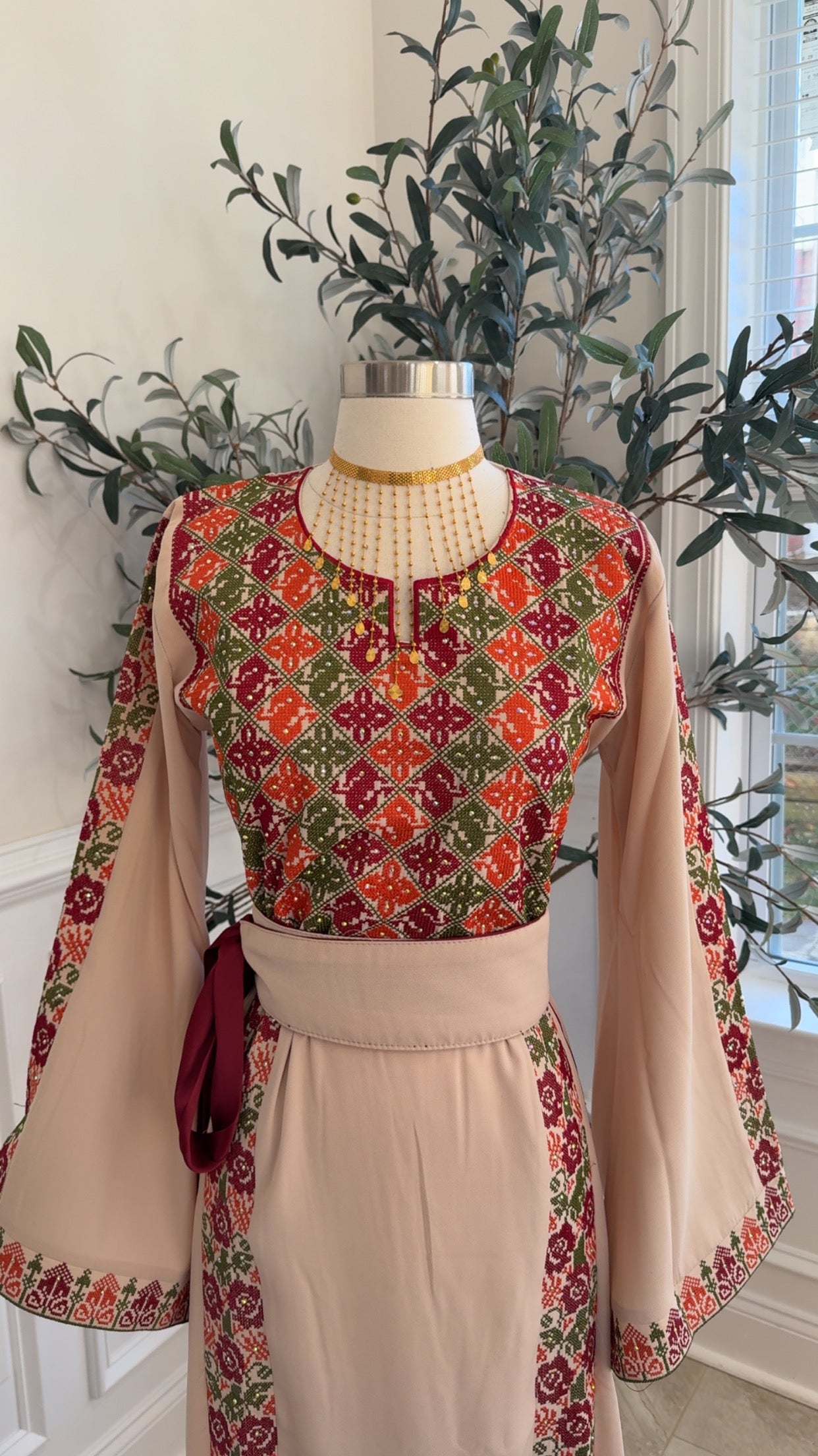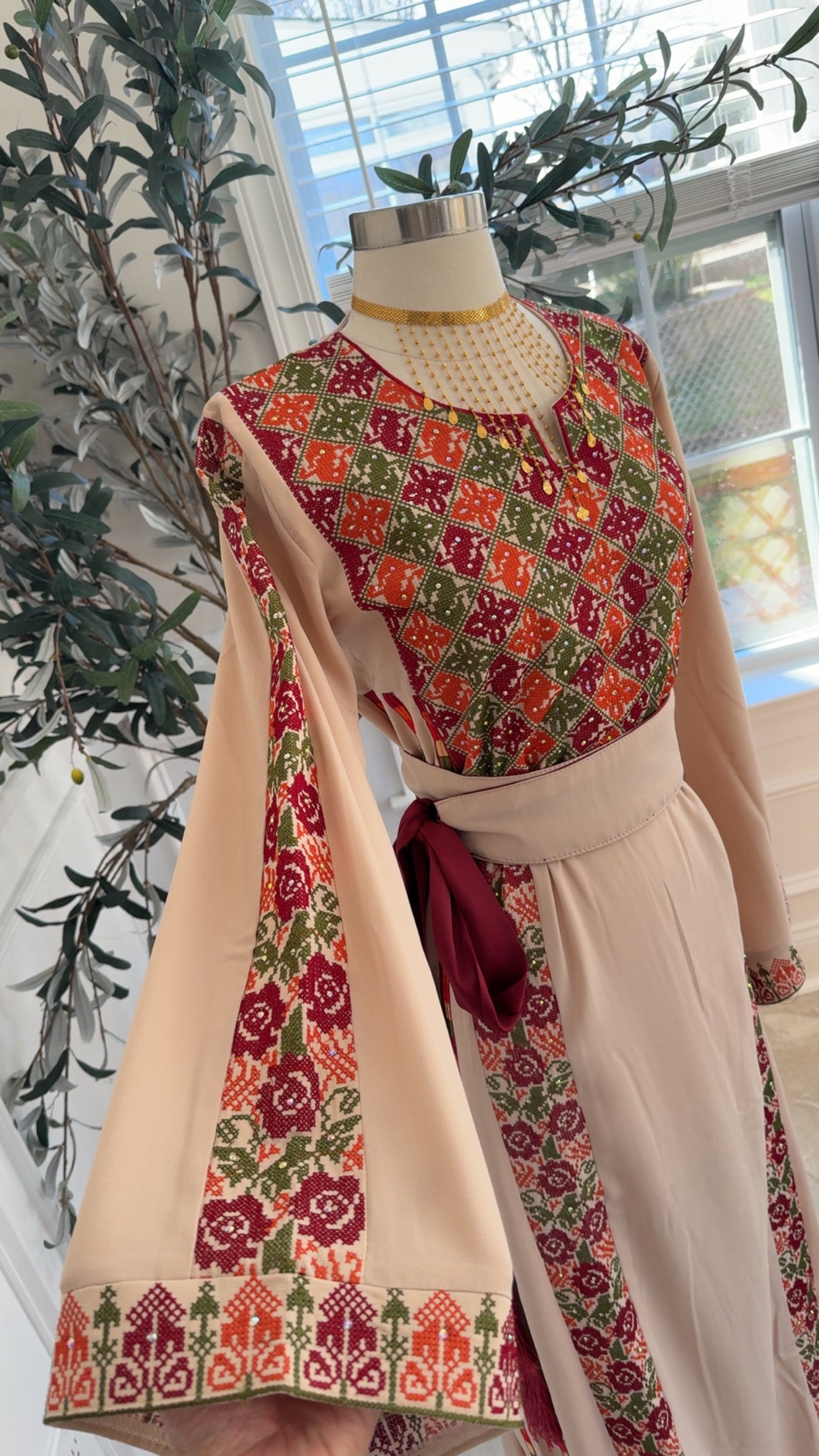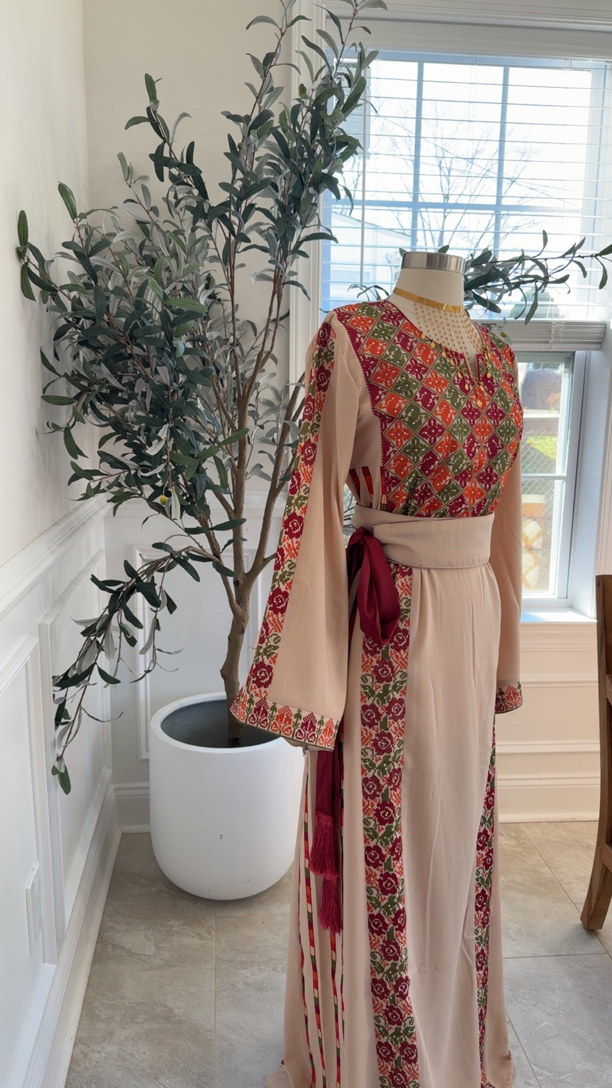 our Newest Floral + Manajel embroidered Tatreez Dresses made with 4 Manajel (٤ عروق) on each side.