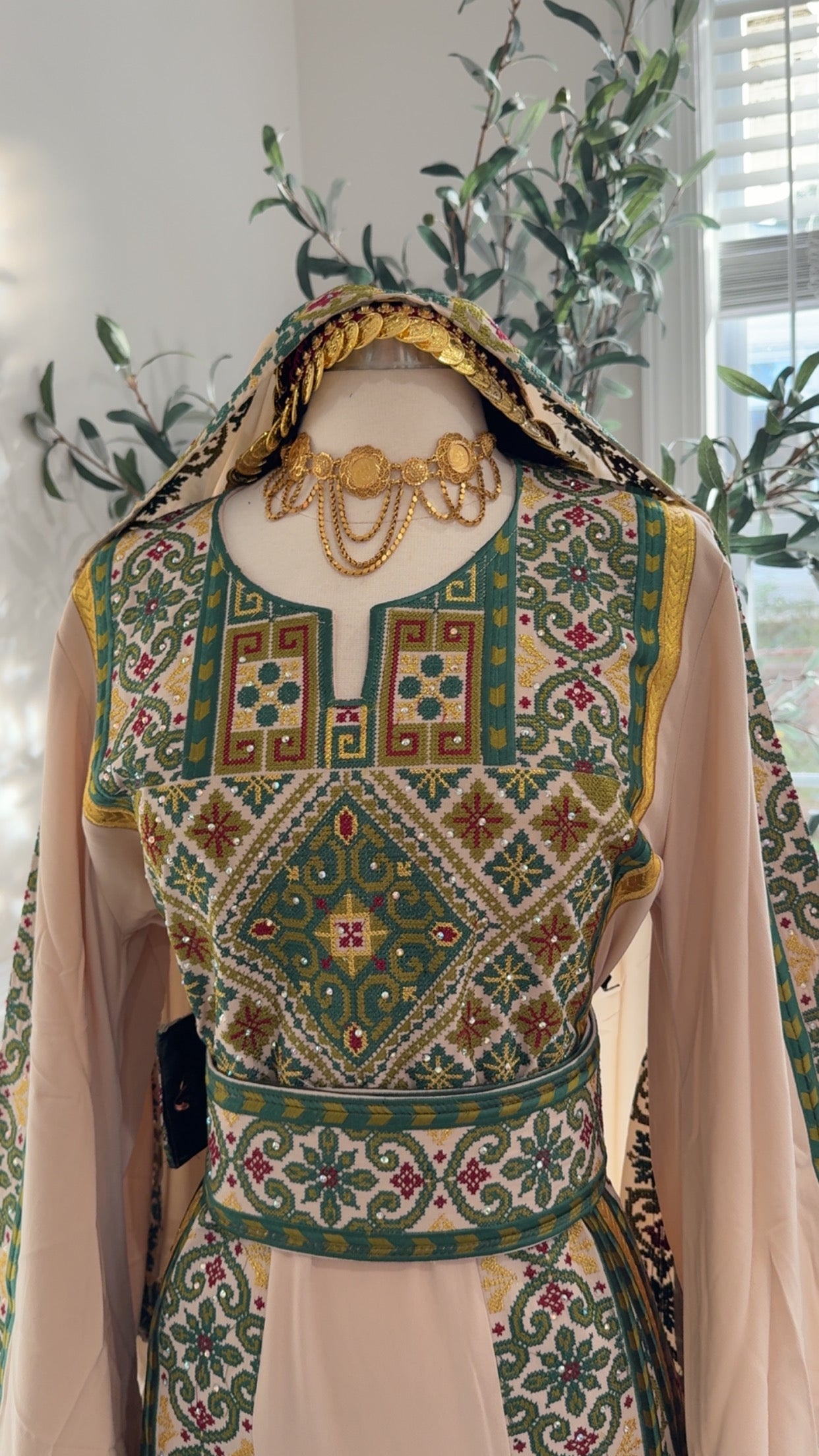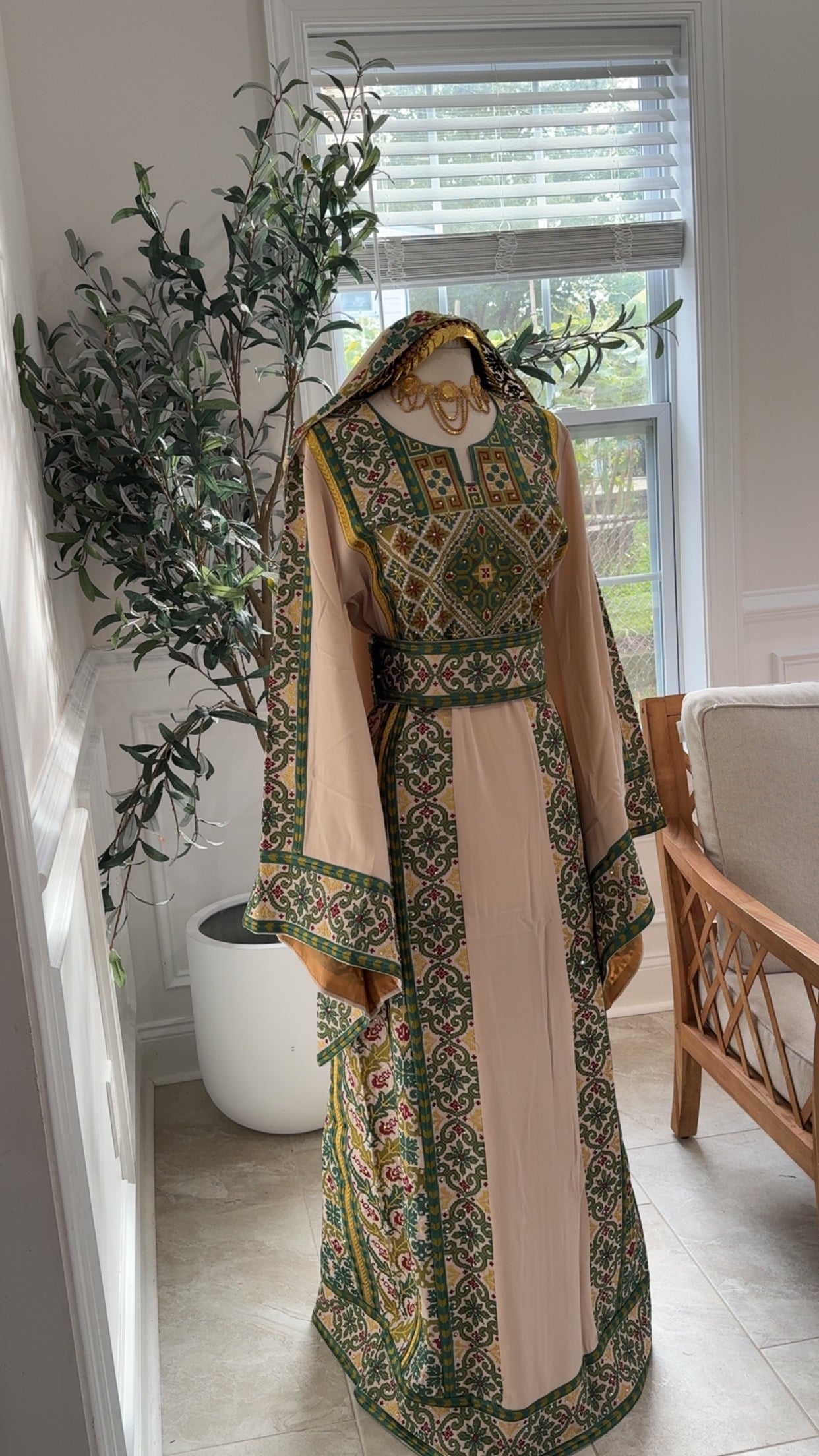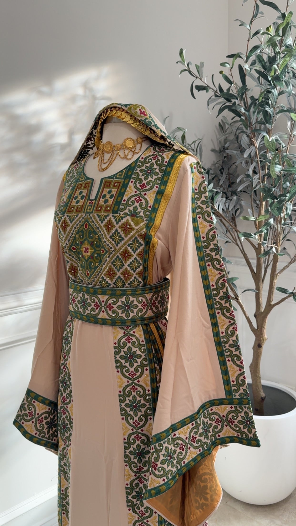 includes matching Tatreez belt & includes matching embroidered scarf / Khirka