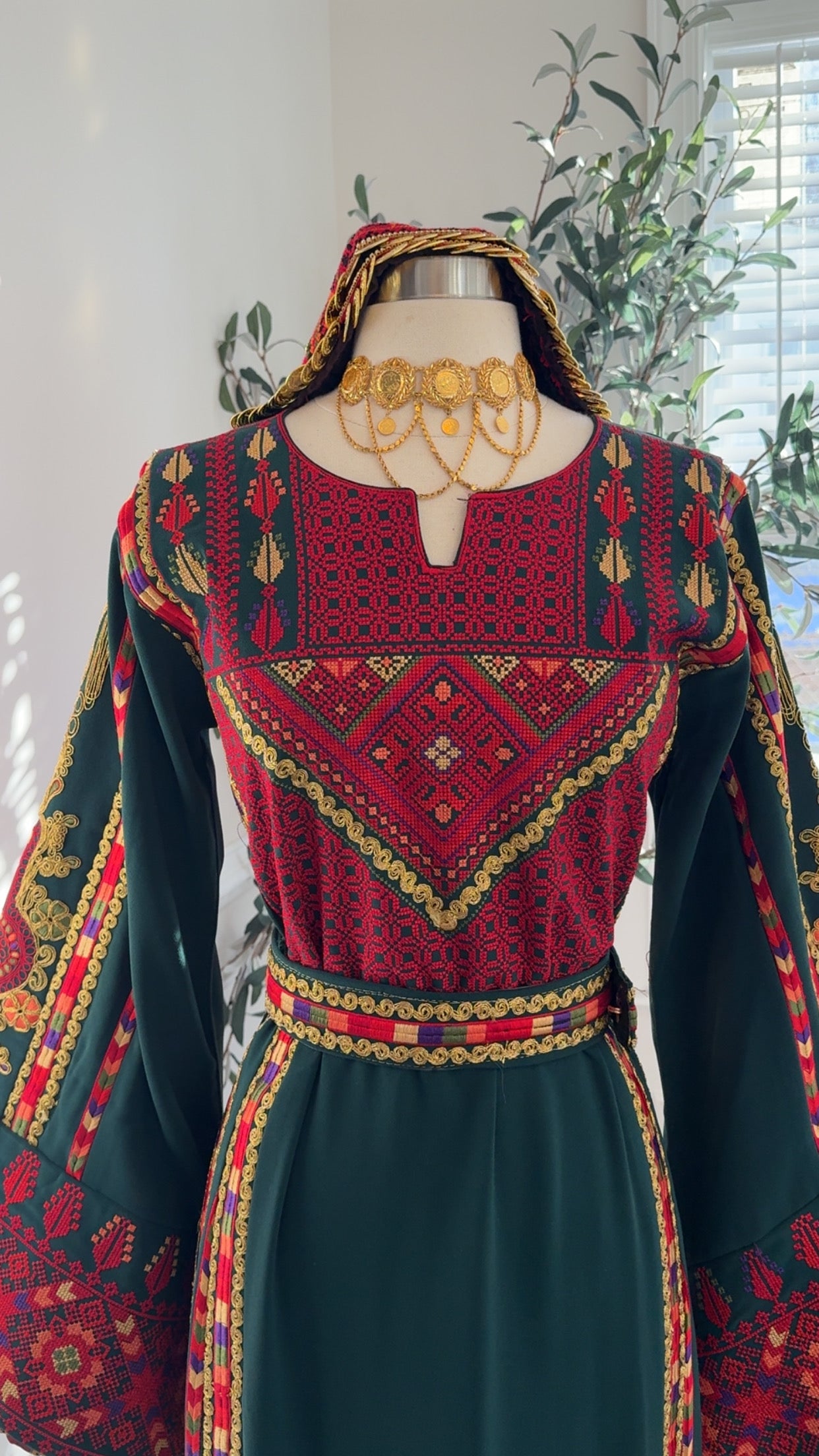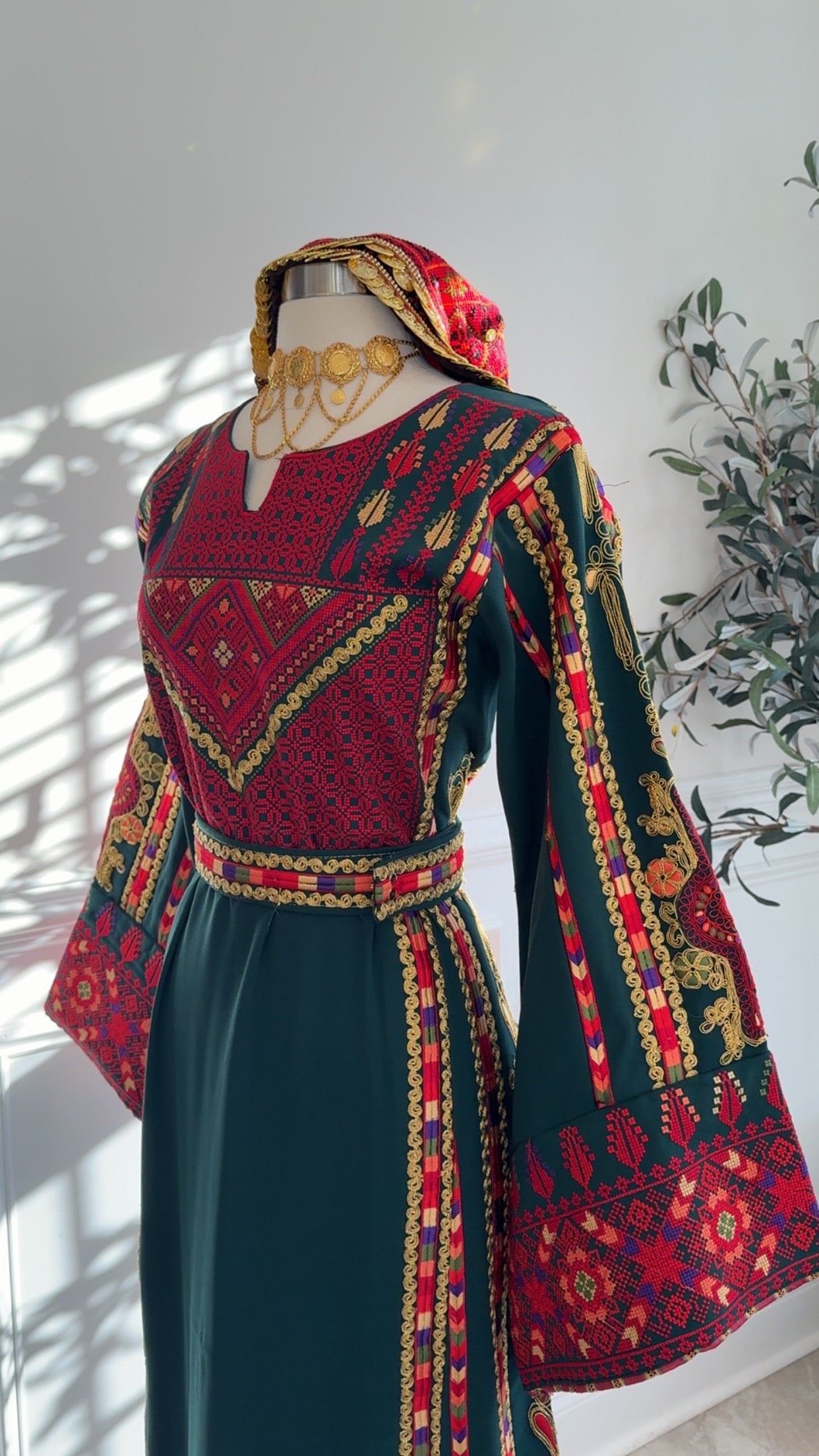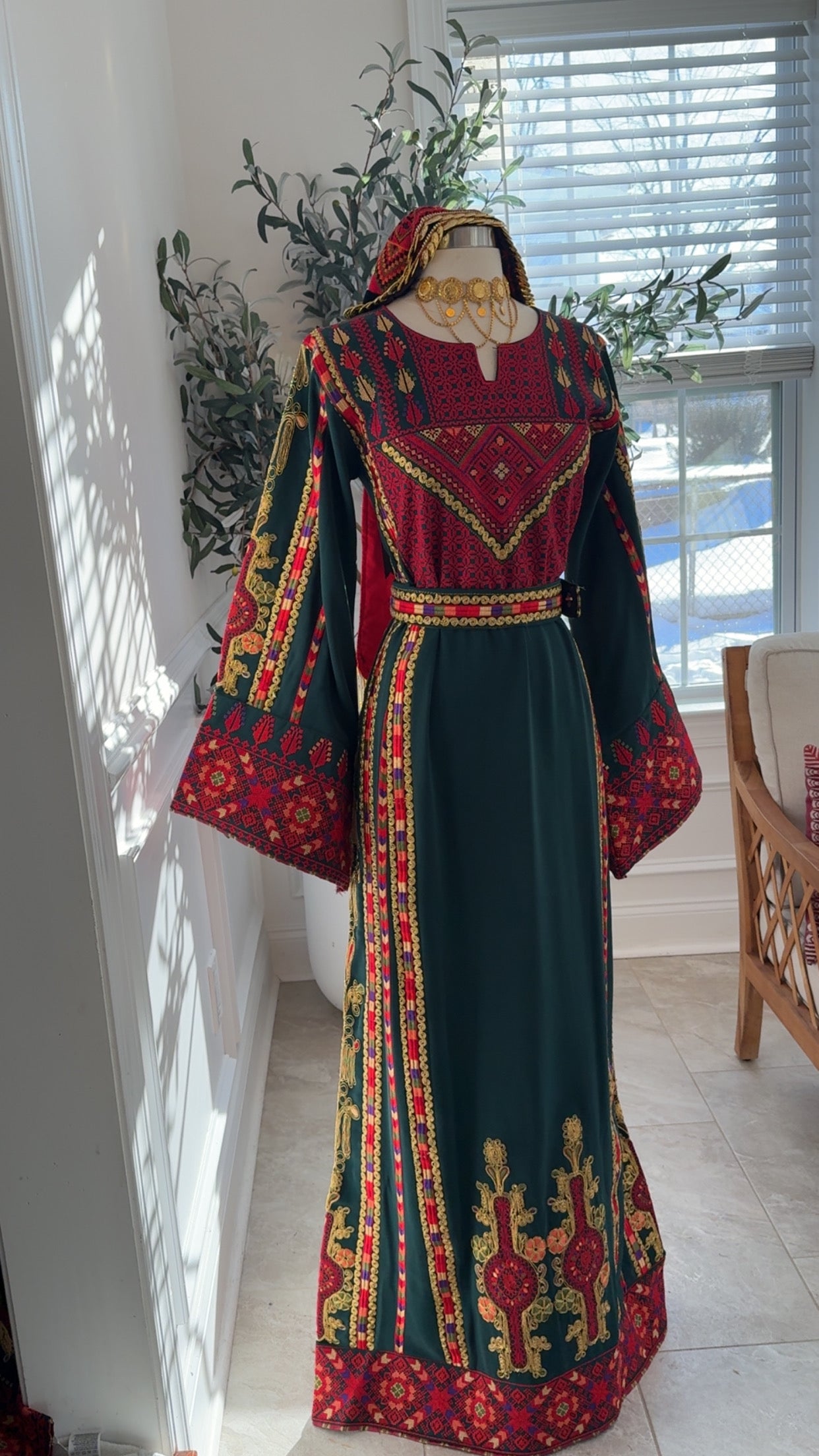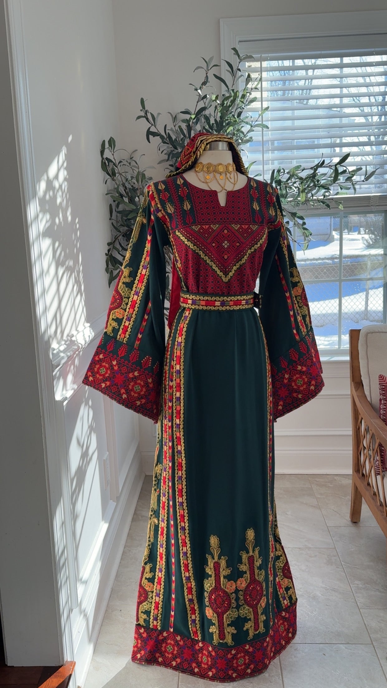 Beautiful Newest Falahi heavily embroidered Thobe with Kasab & Malika embroidery