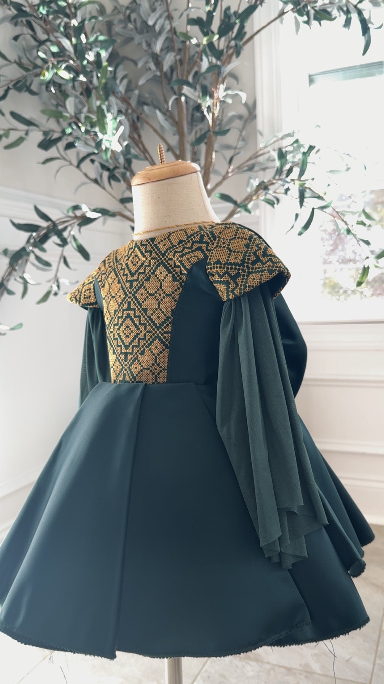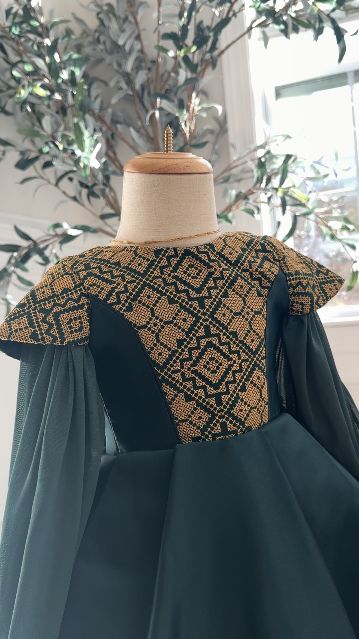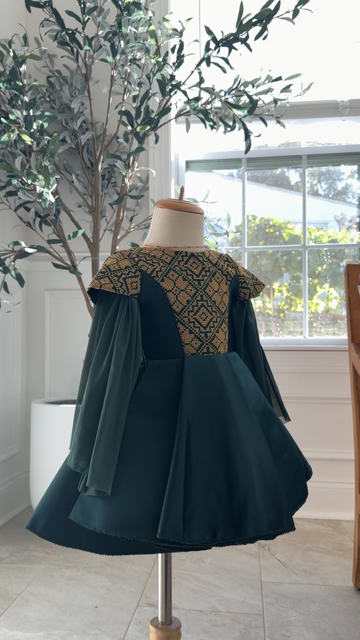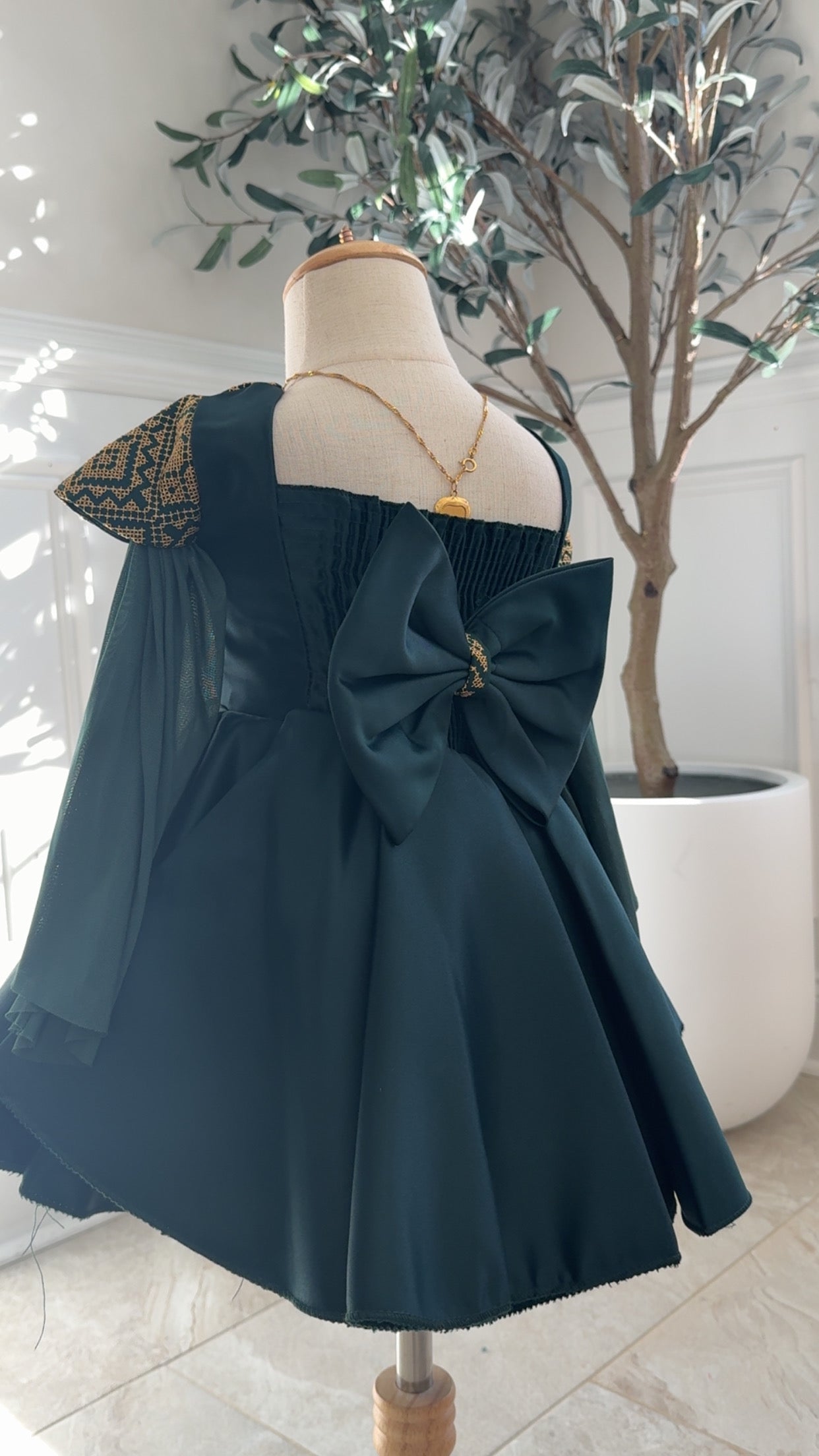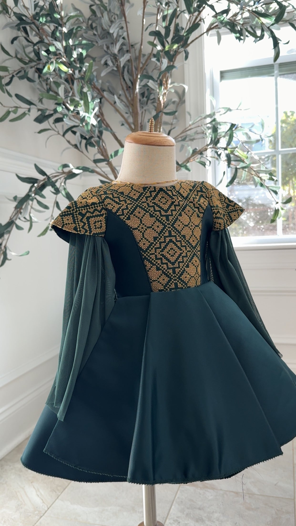 Beautiful new green color embroidered tatreez dress with butterfly sleeves