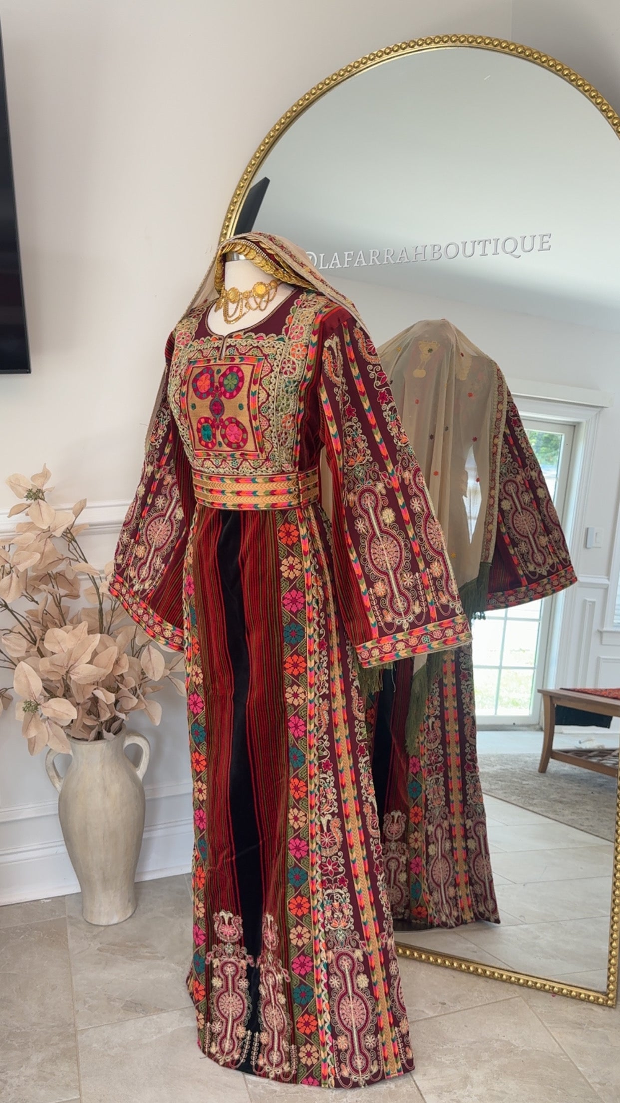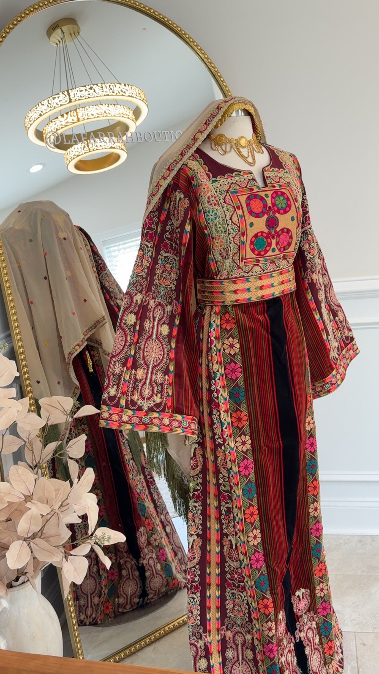 Newest JAna & Nar Velvet Material Thobe Malika vintage inspired Embroidery design with Kasab embroidery