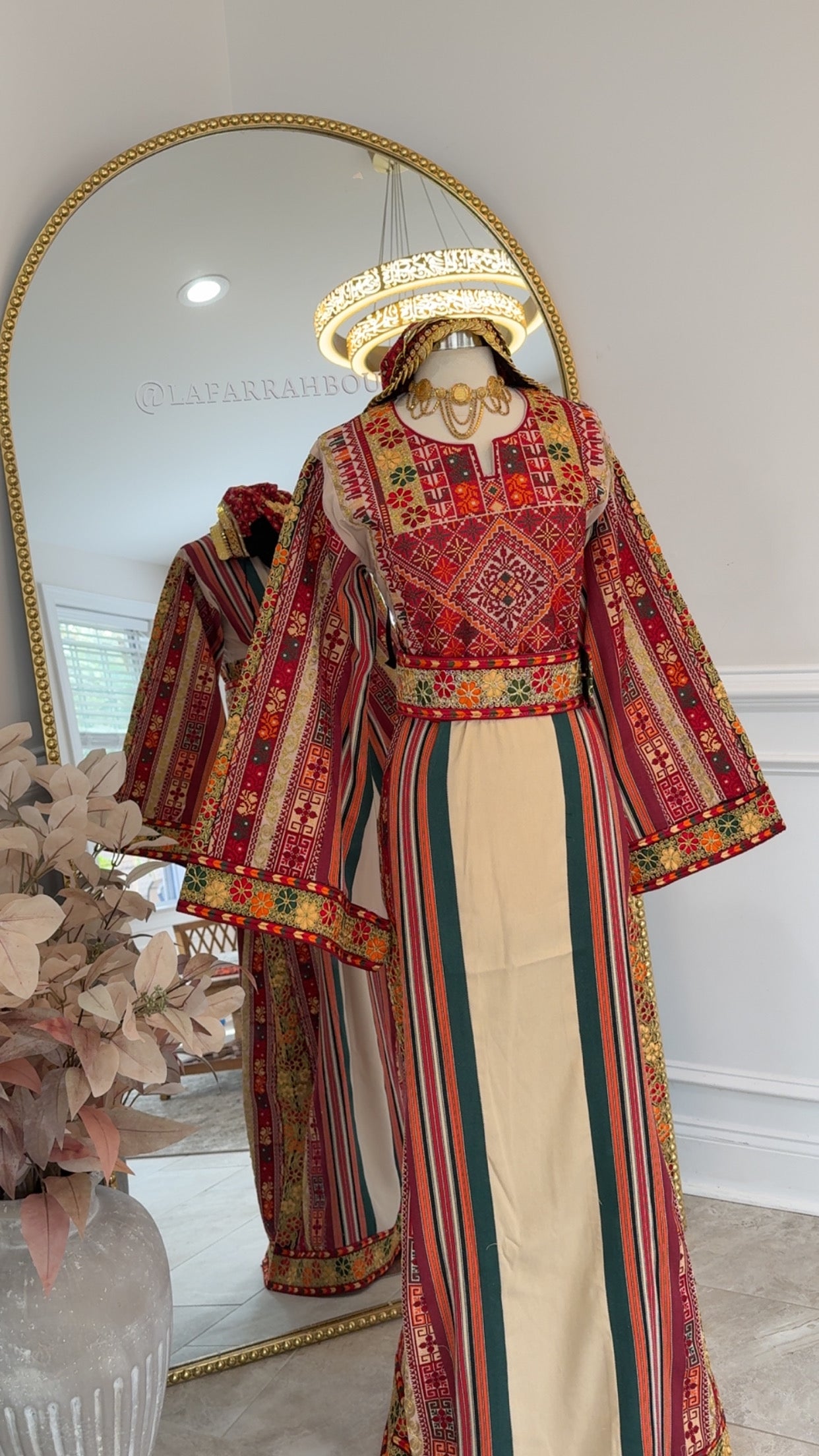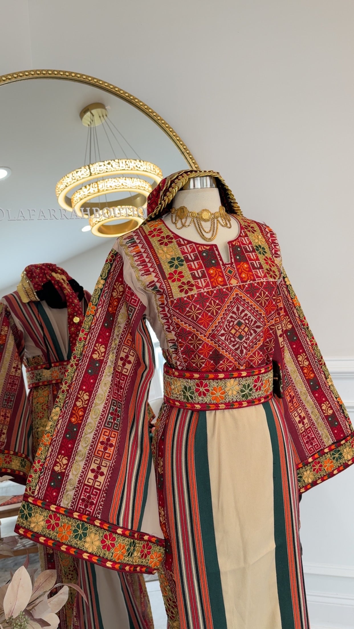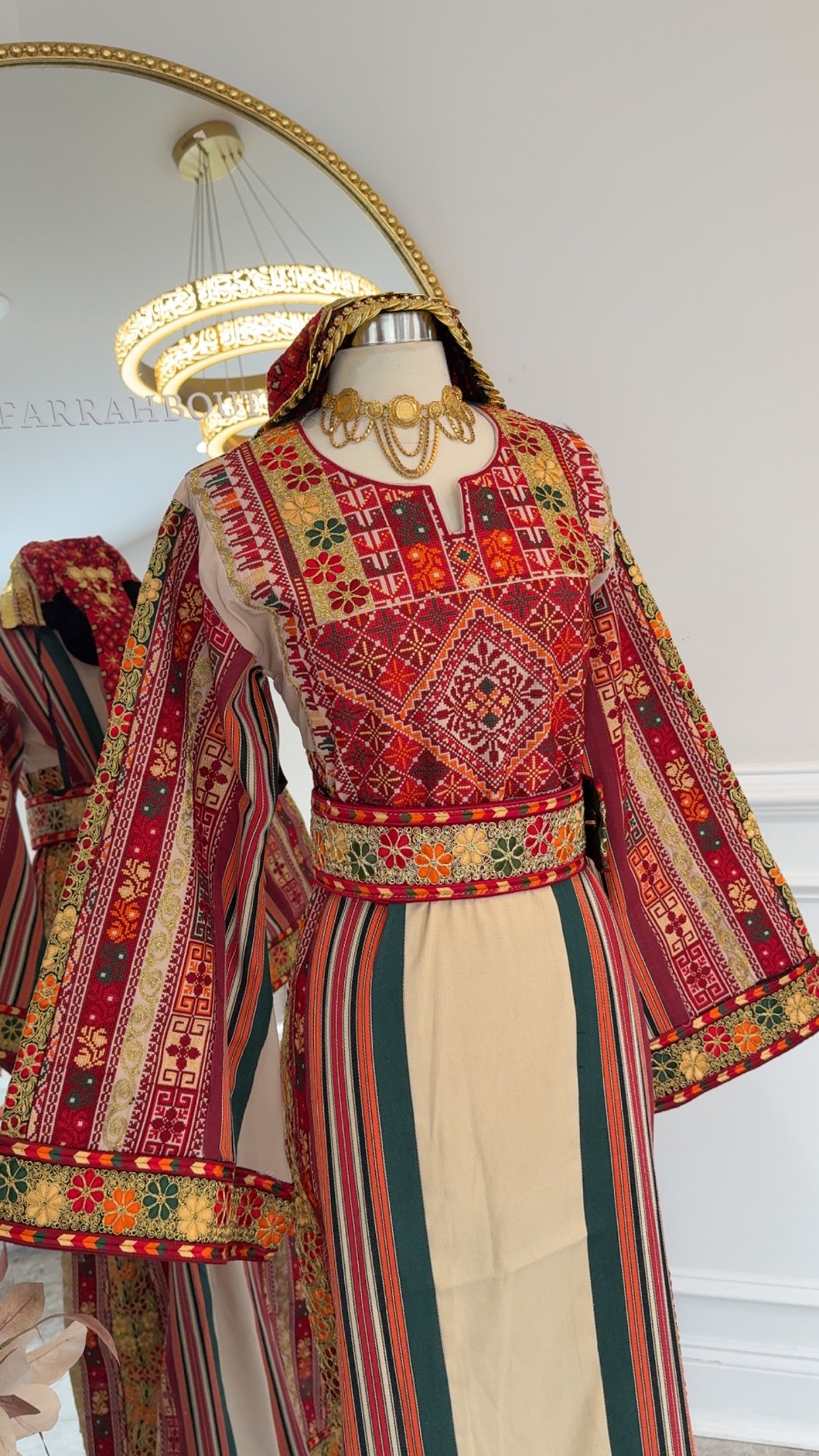 Beautiful New Majdlawi Thobe with heavily Kasab Embroidery on the newest and latest Beige color Majdlawi material