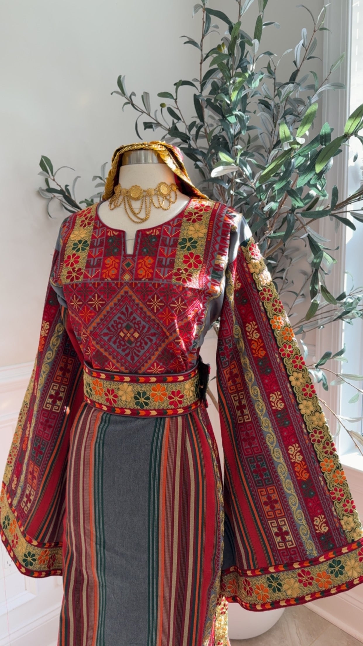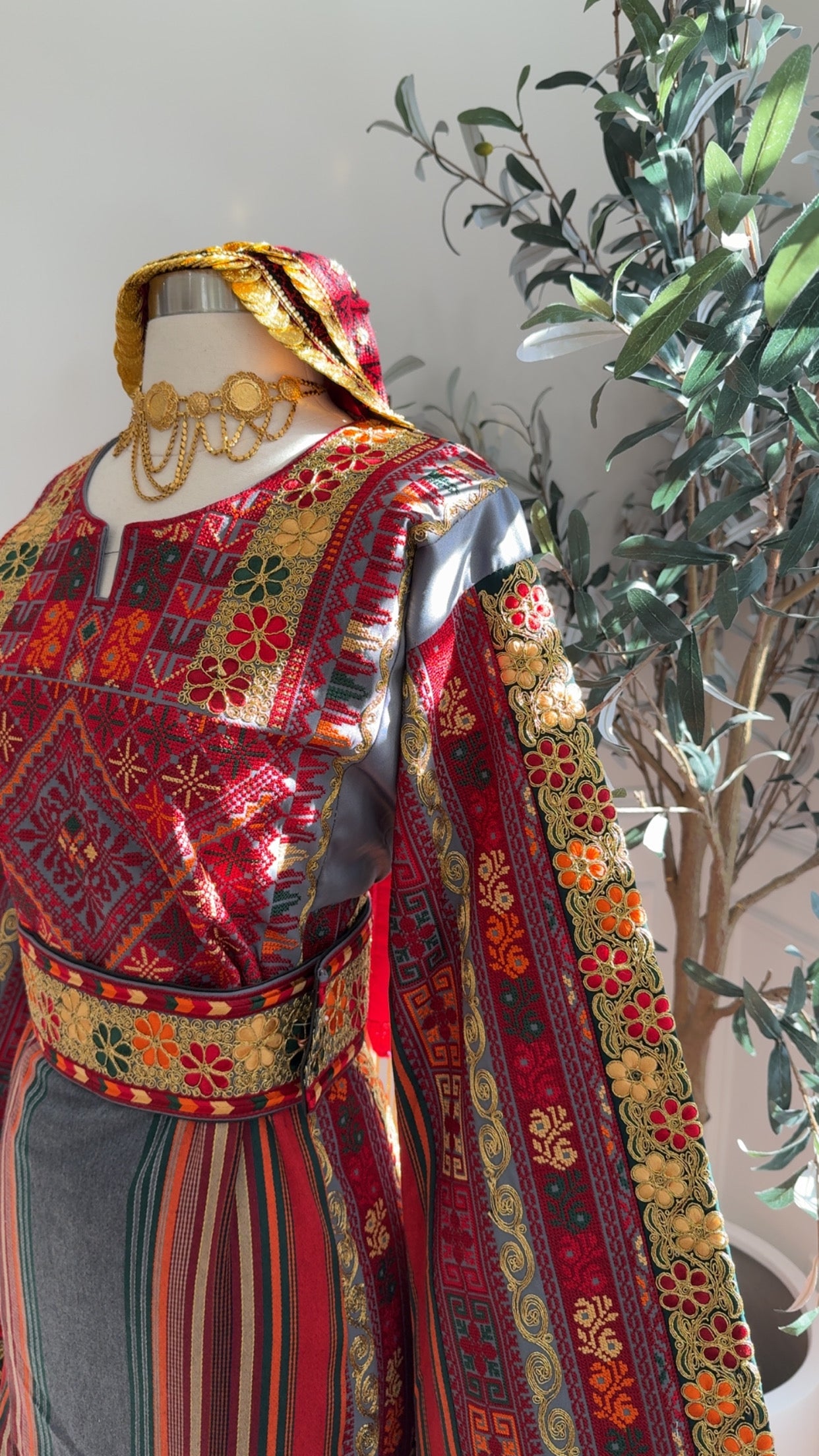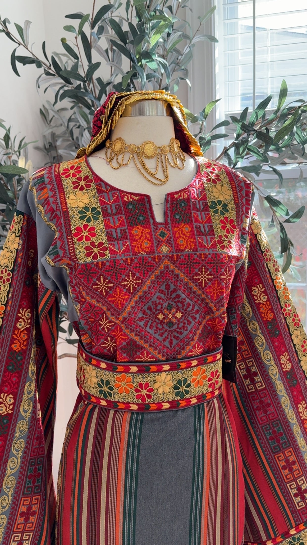 Beautiful New Majdlawi Thobe with heavily Kasab Embroidery on the newest and latest Grey color Majdlawi material