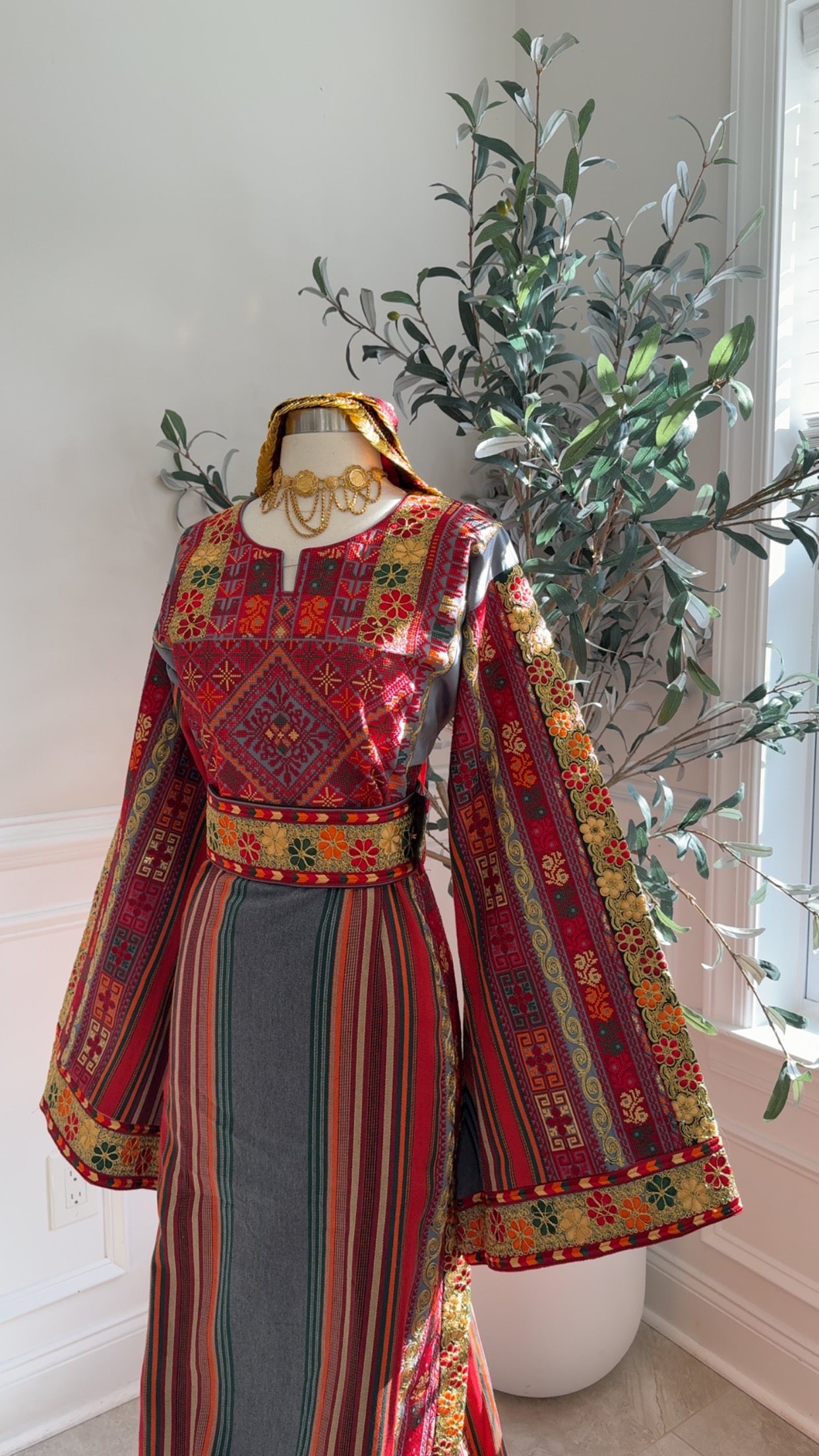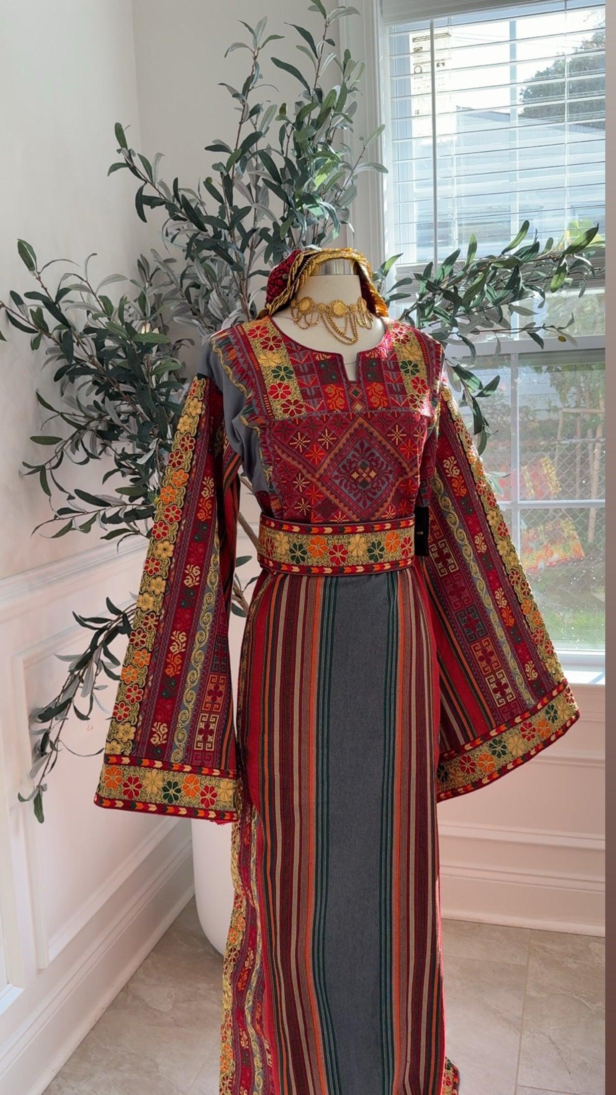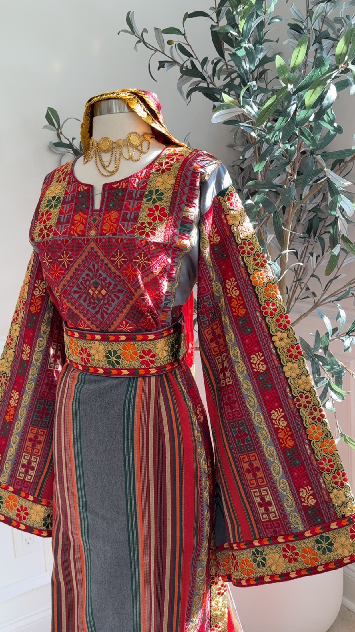 Beautiful New Majdlawi Thobe with heavily Kasab Embroidery on the newest and latest Grey color Majdlawi material