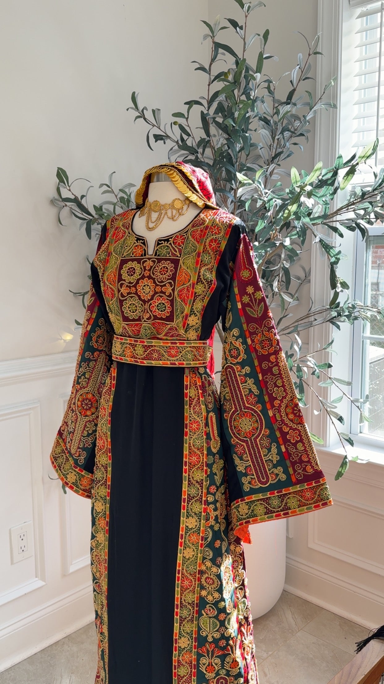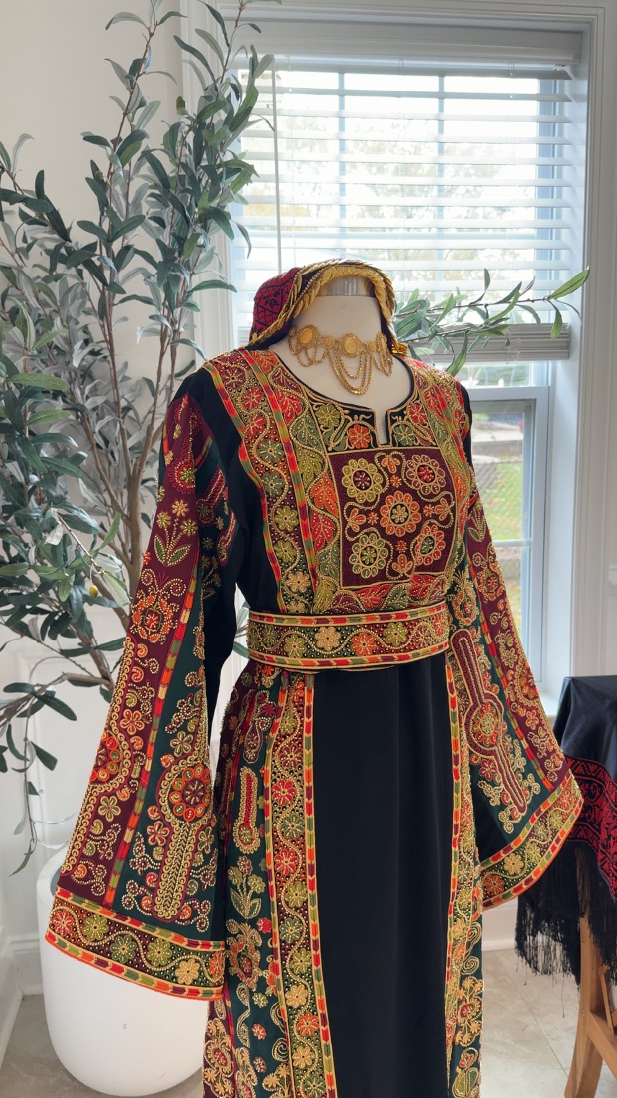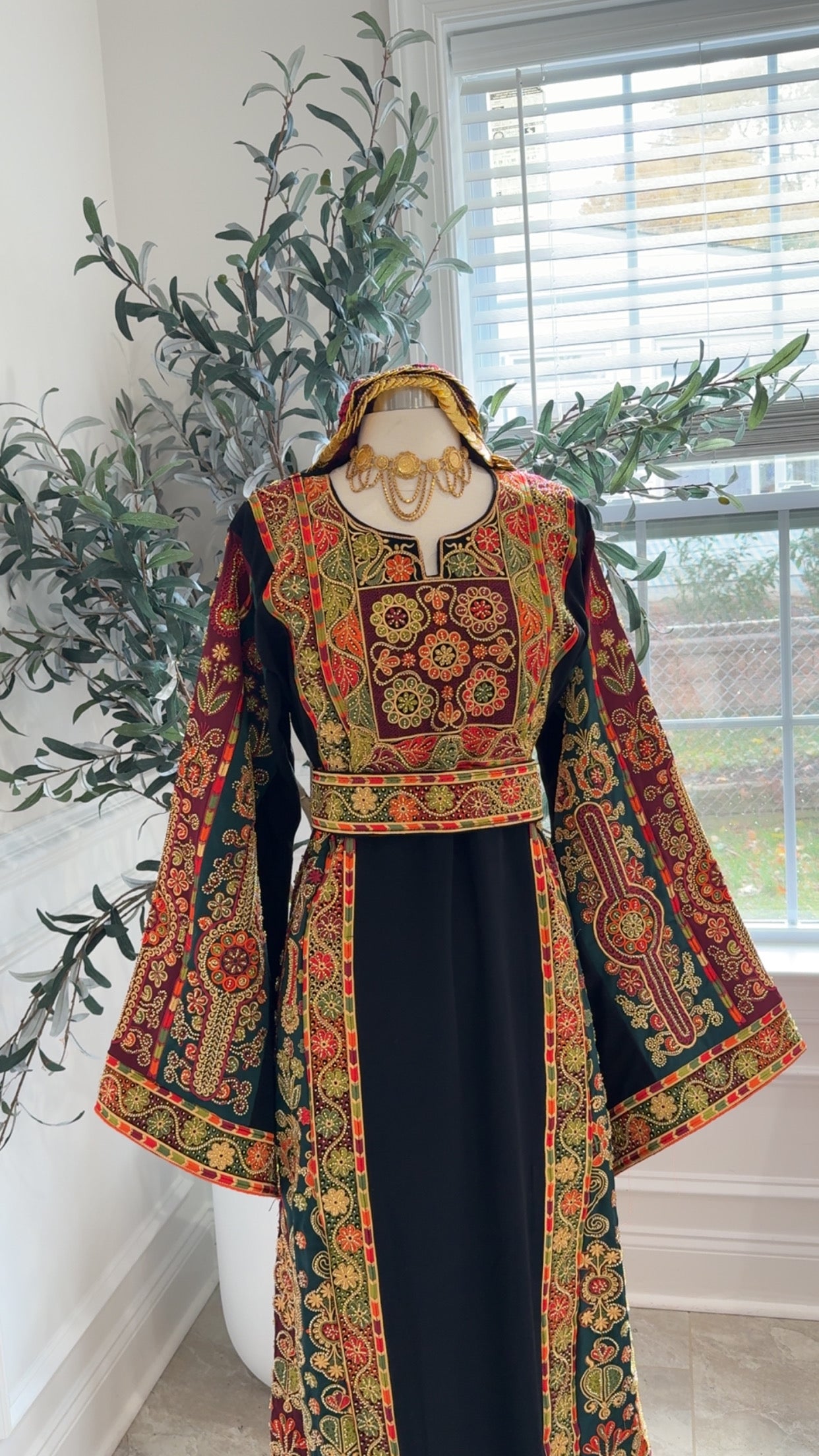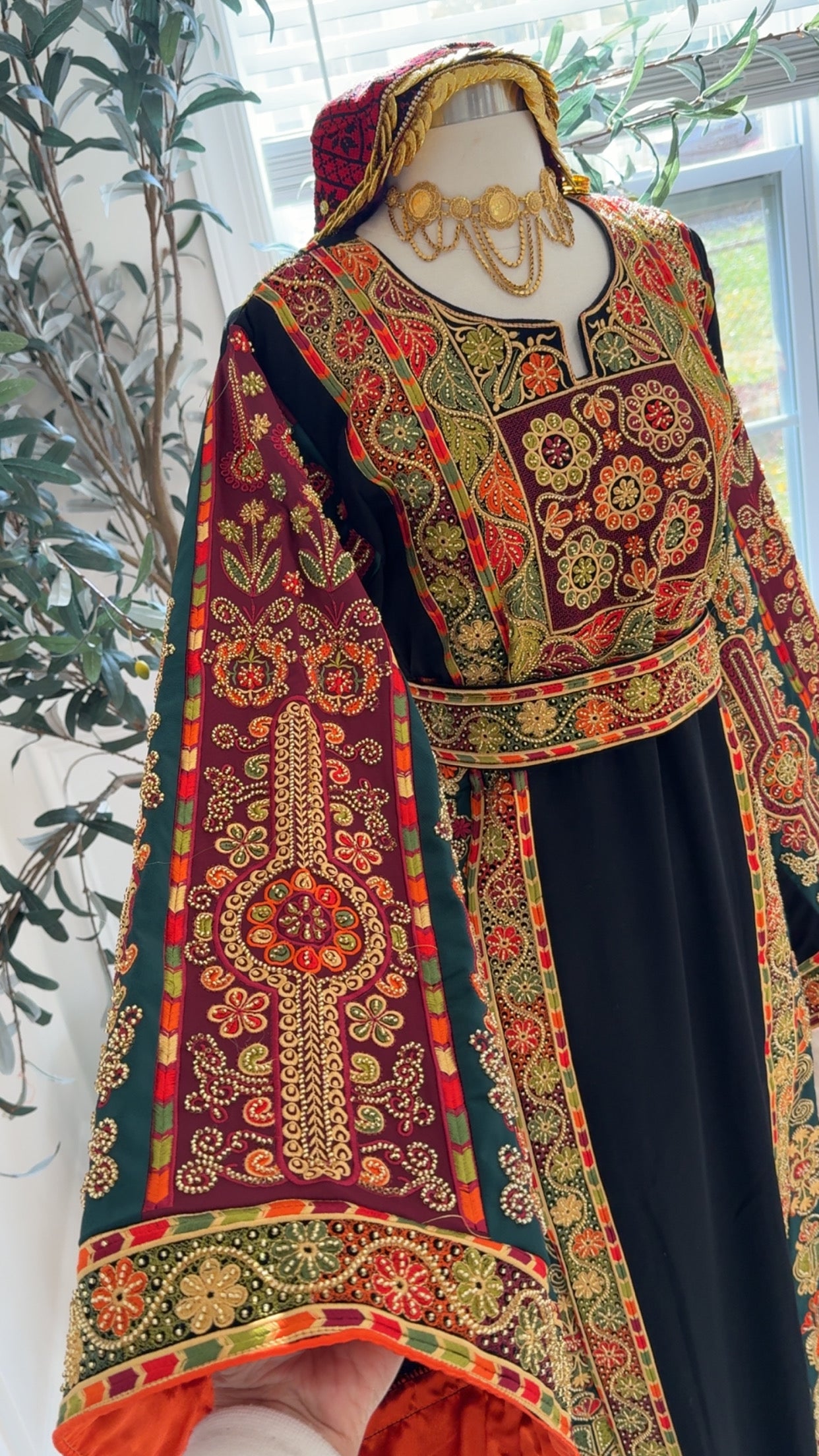 Newest black color material Thobe Malika Embroidery design with fully beaded rhinestones through out