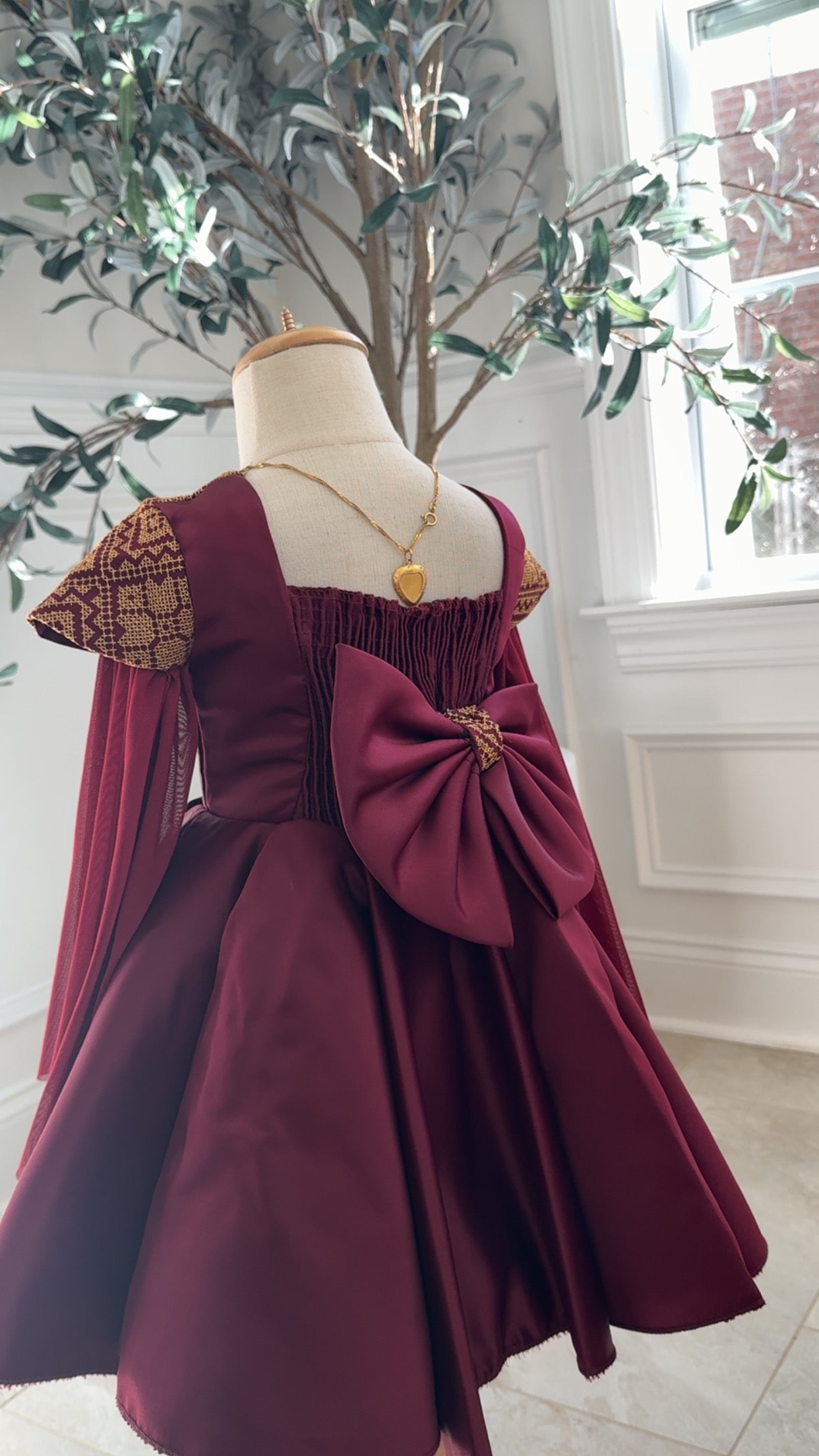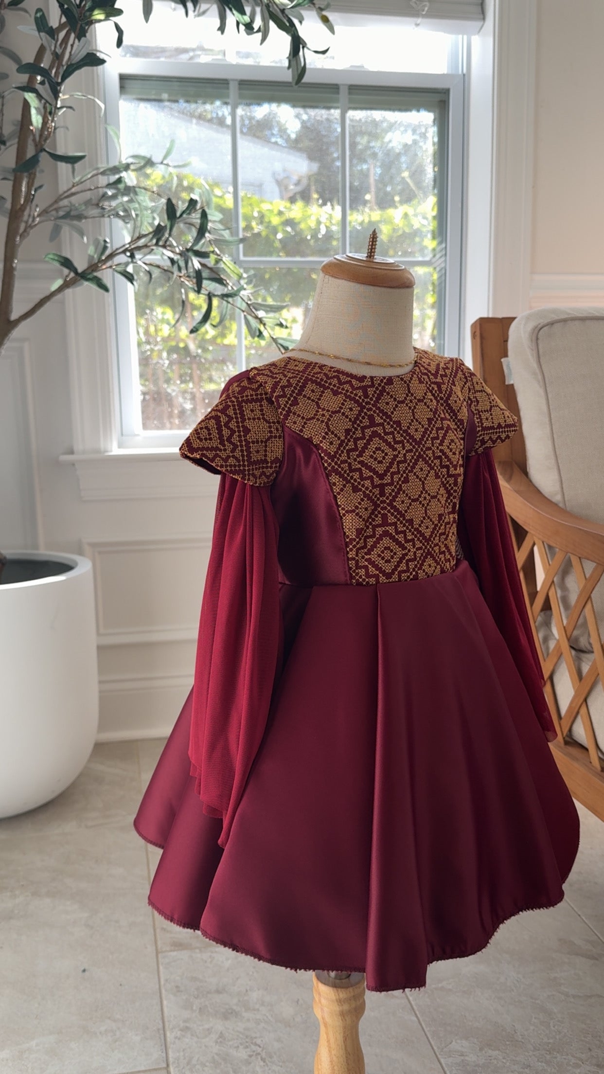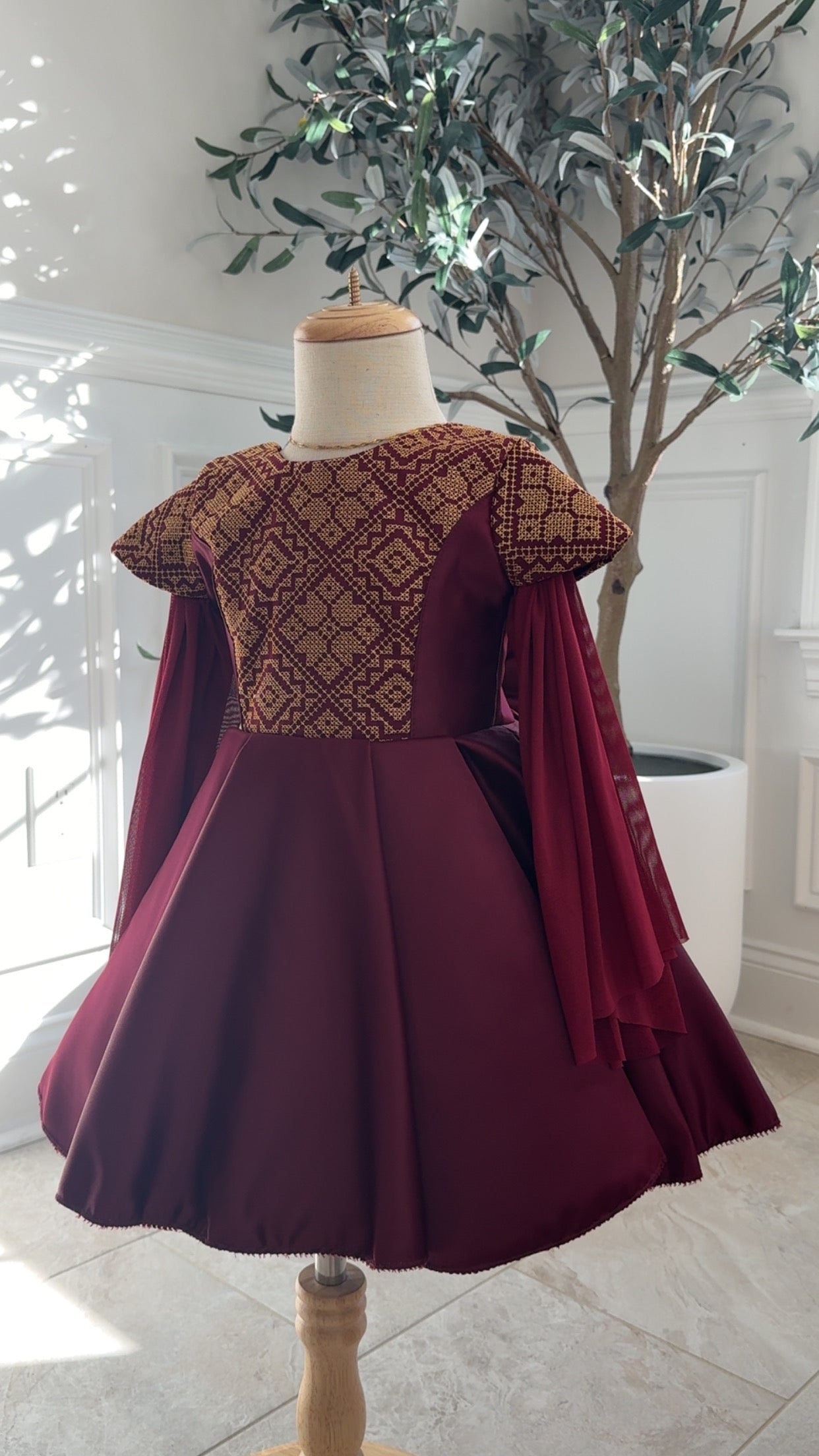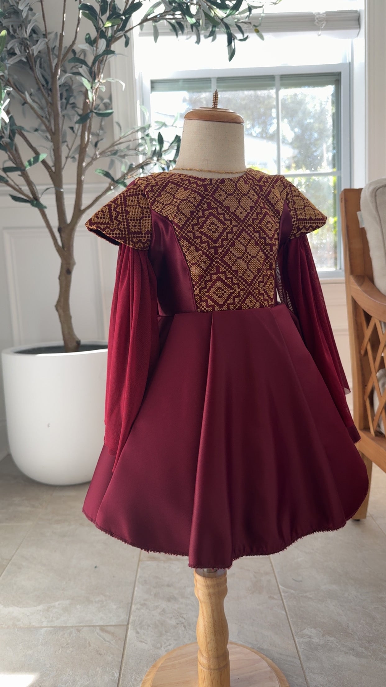 Beautiful new Maroon color embroidered tatreez dress with butterfly sleeves