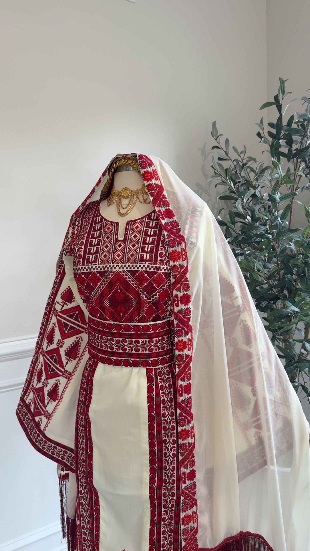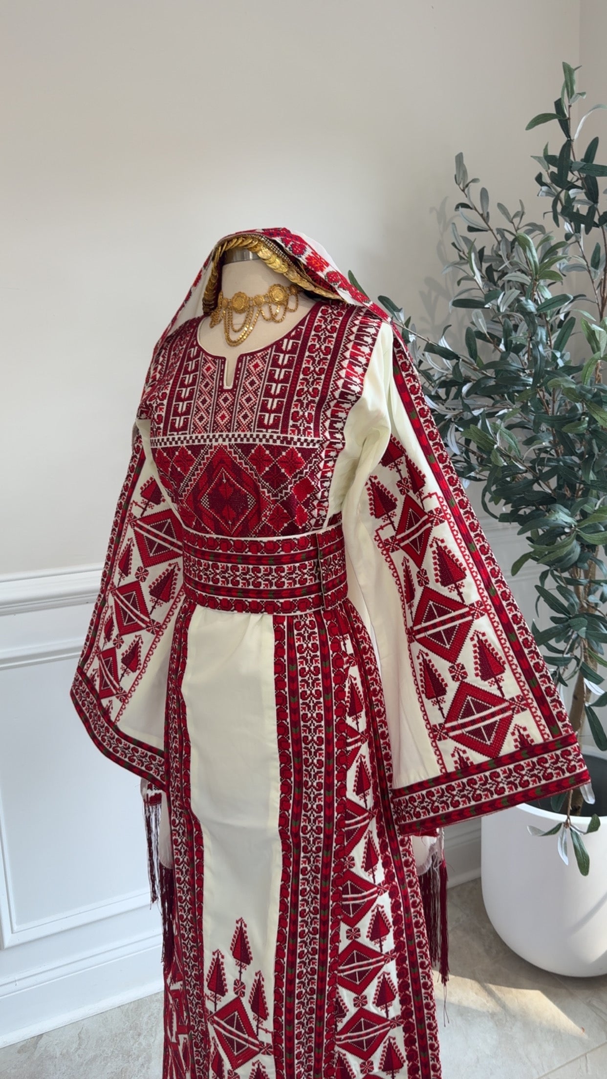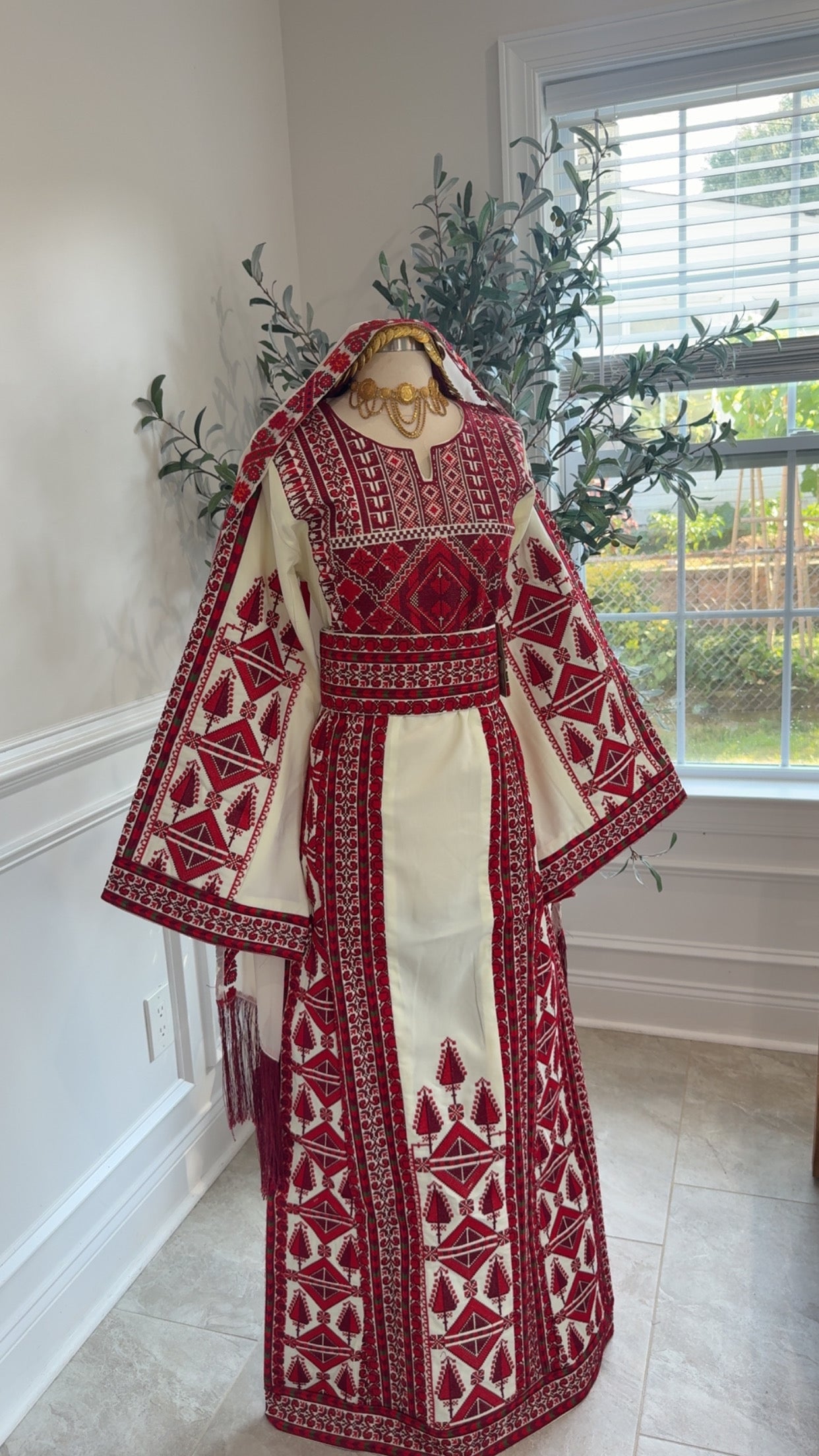 New Beautiful Heavily Maroon embroidery in soft beige material Thobe