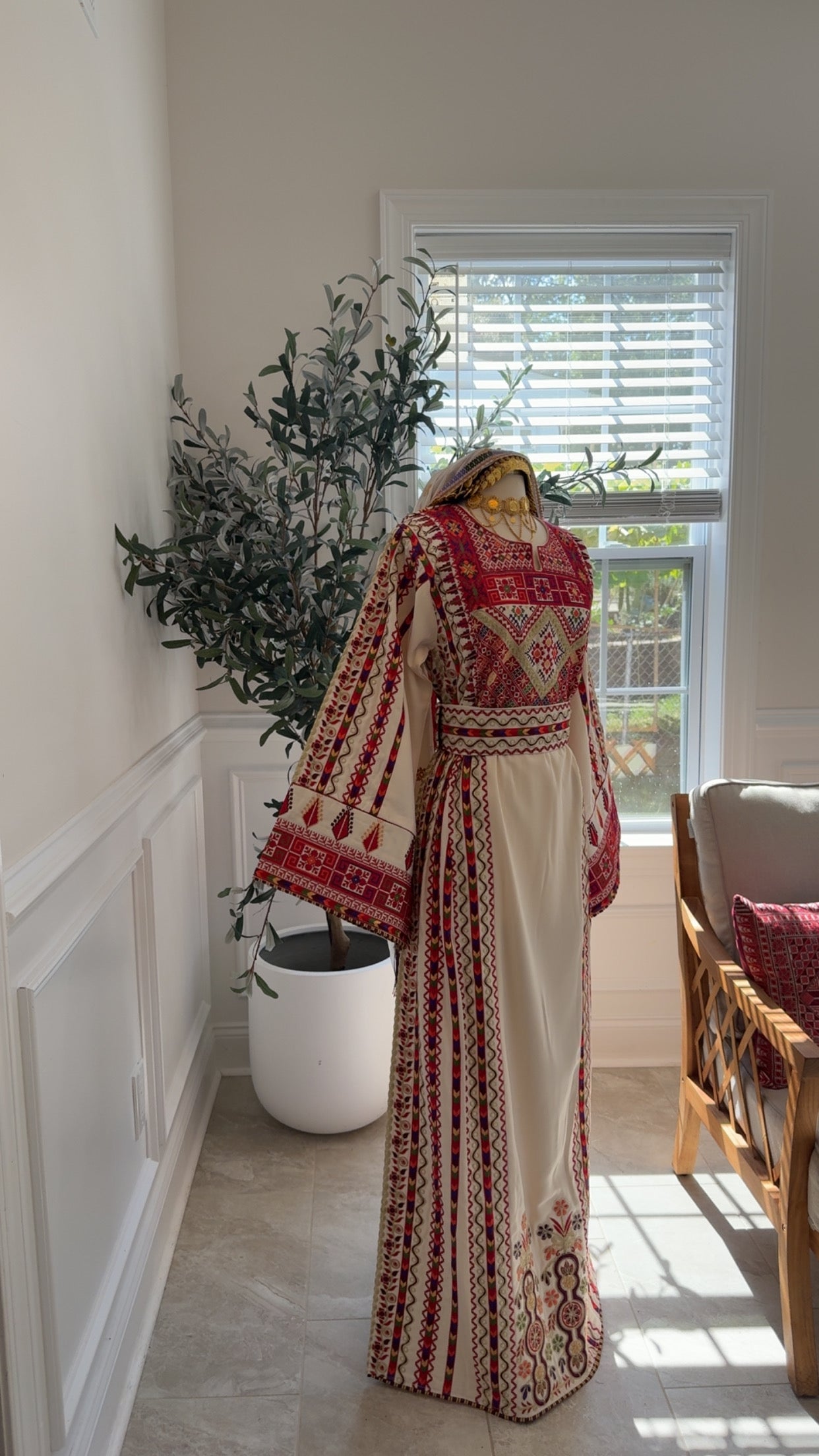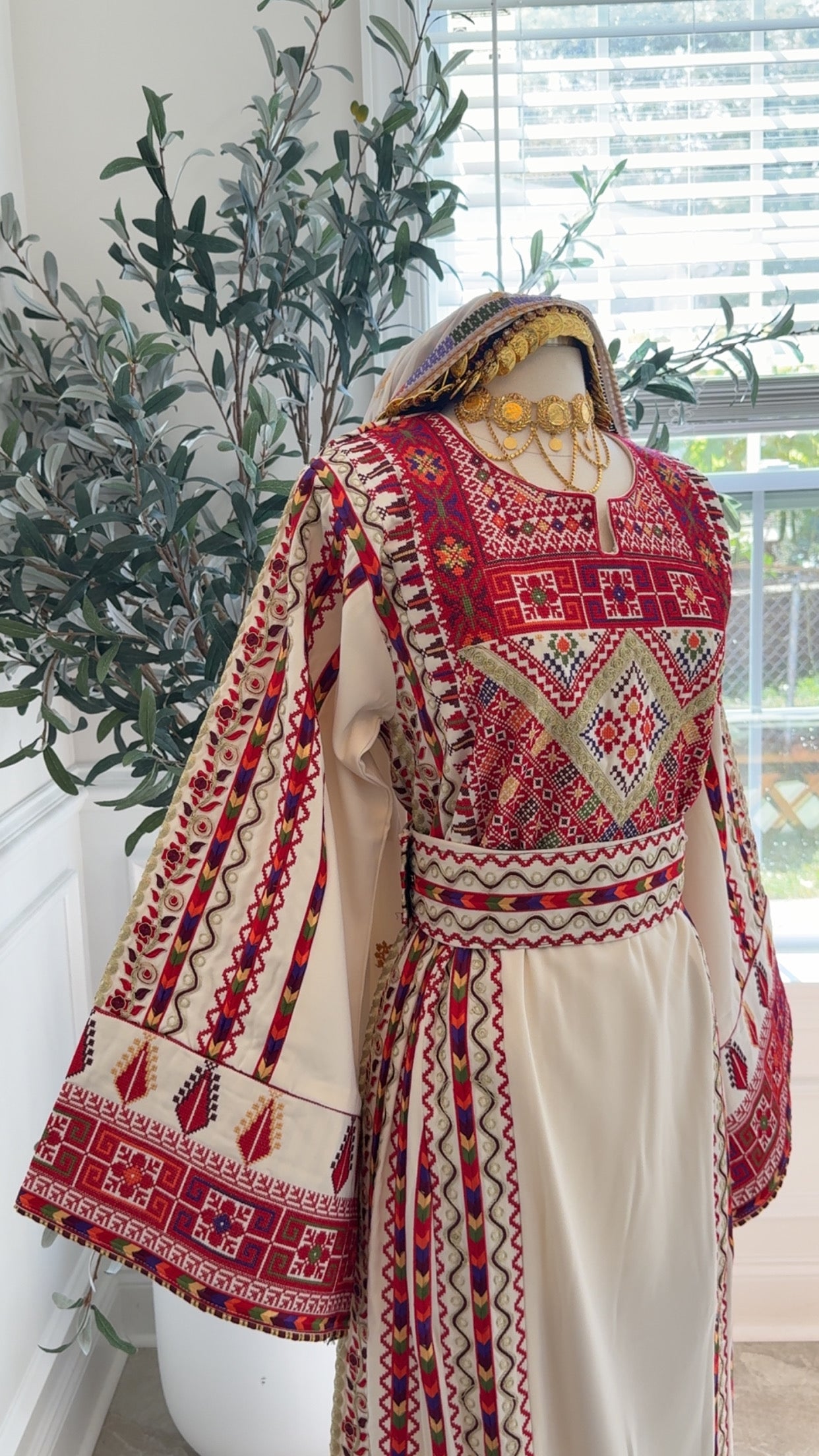 Beautiful New embroidery design Thobe made with heavily Manajel & Kasab Embroidery on Pearl White color material