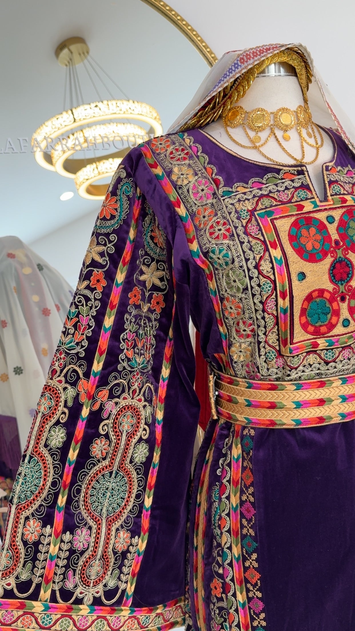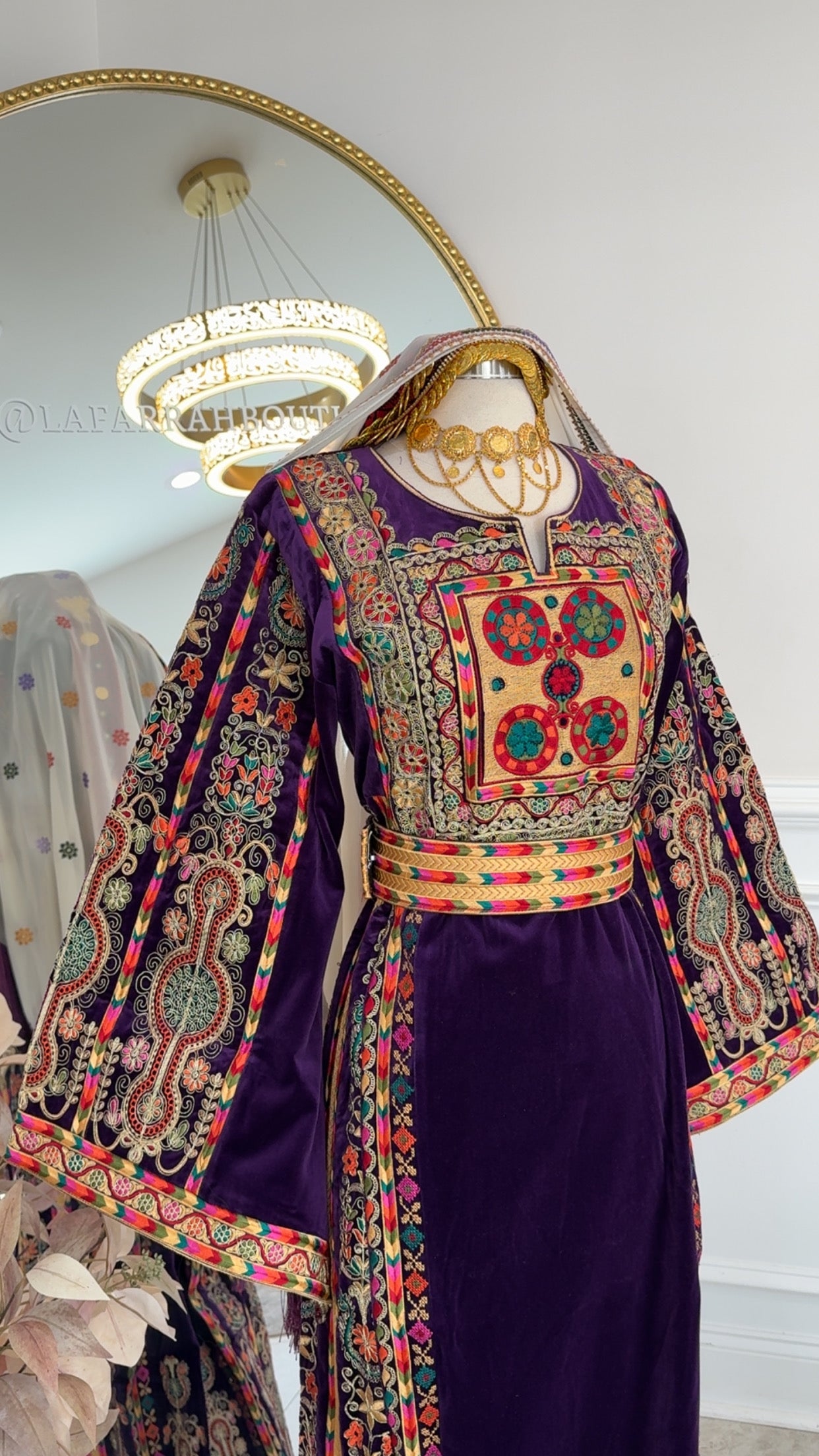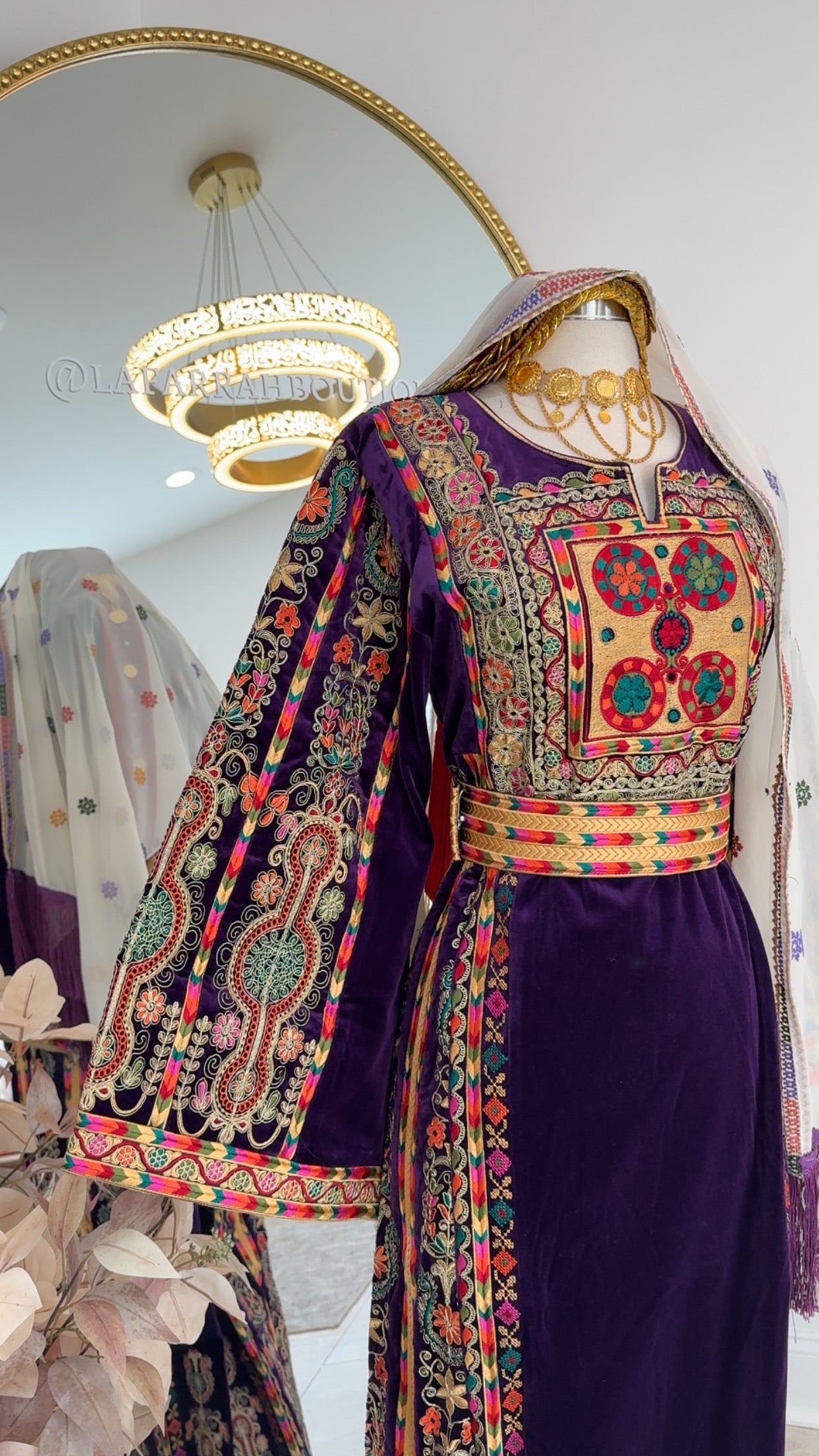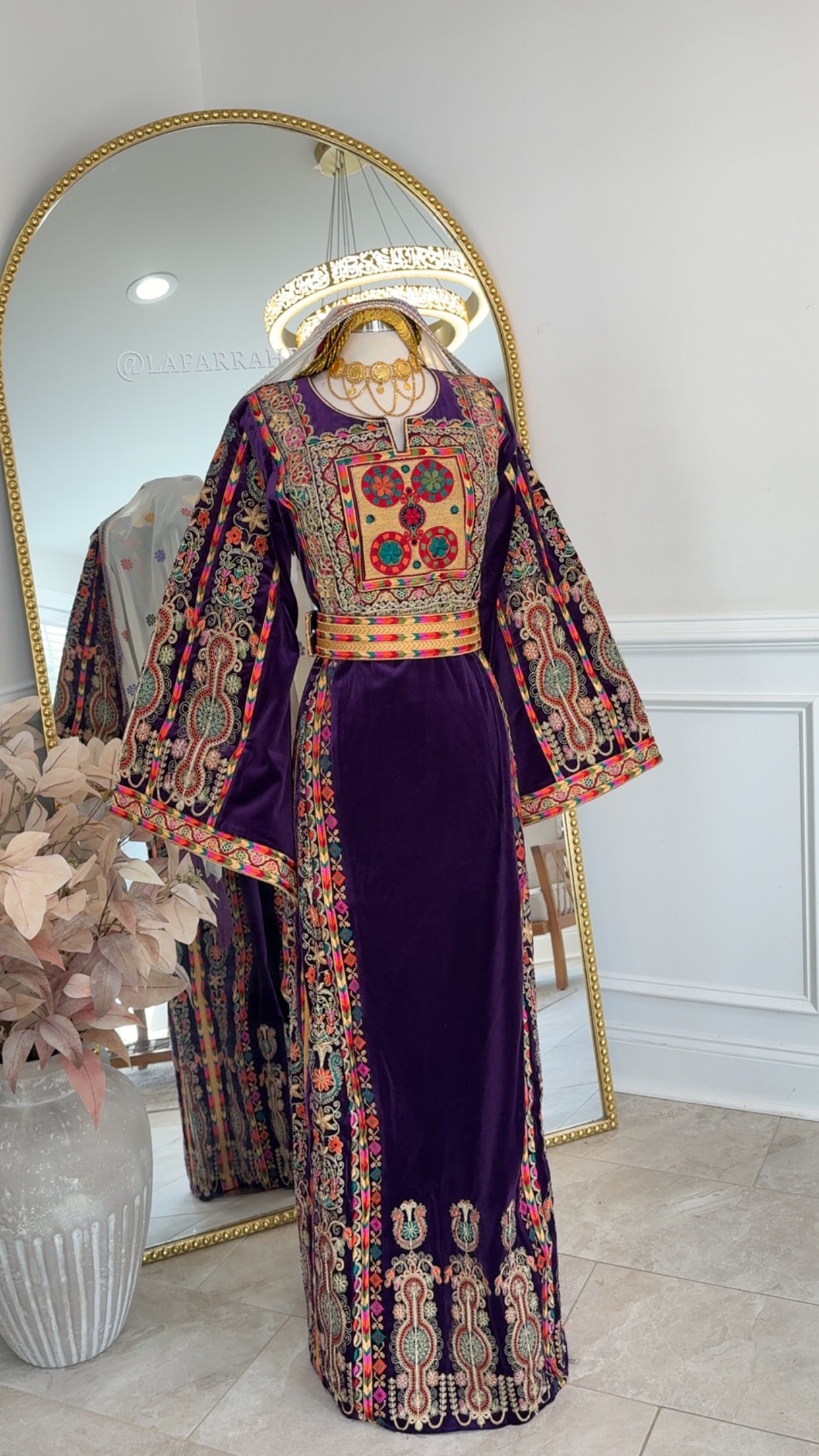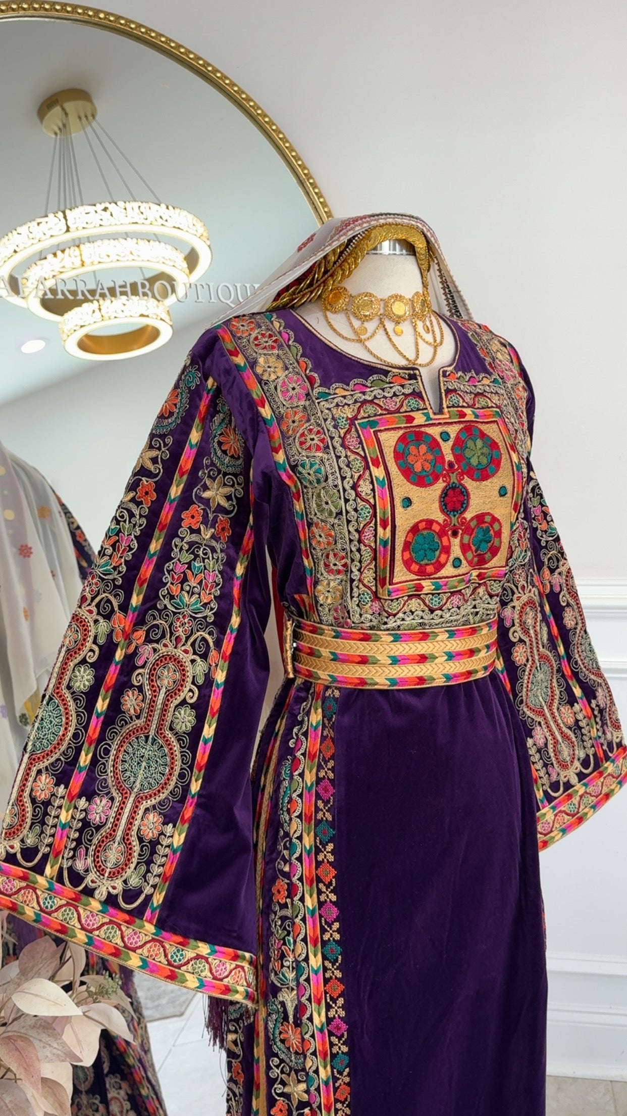 Newest purple color Velvet Material Thobe Malika vintage inspired Embroidery design with Kasab embroidery