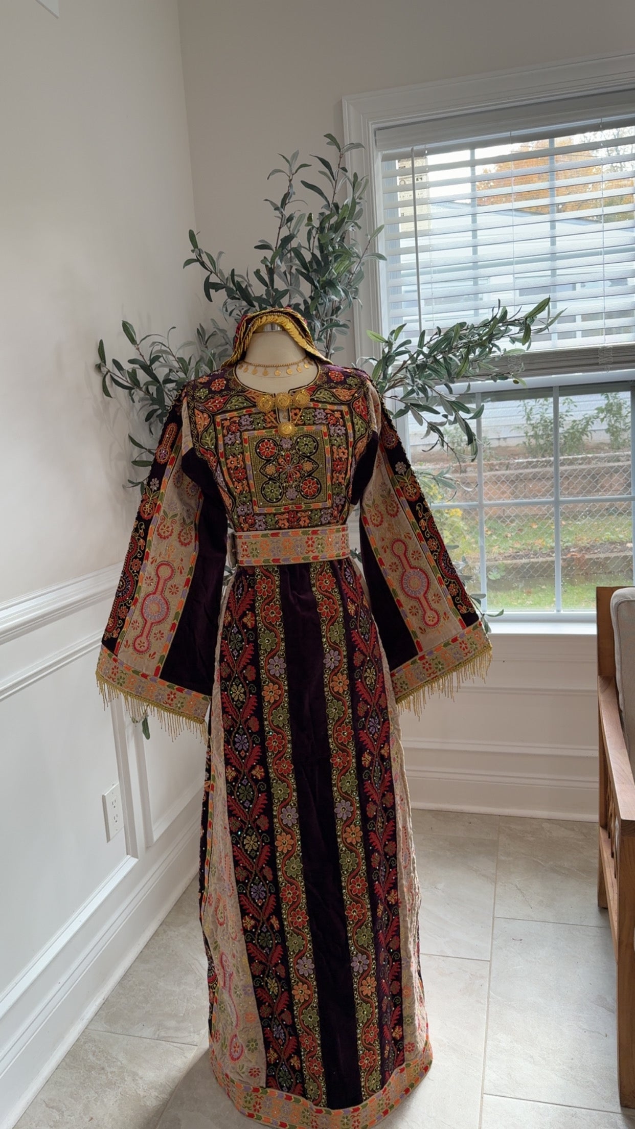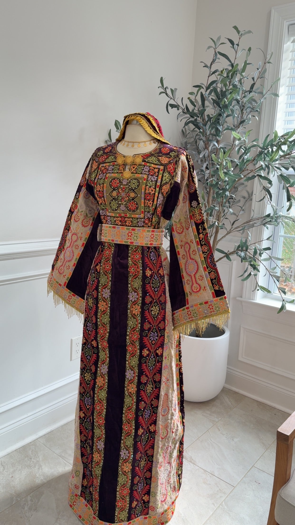 New velvet heavily embroidered Malika design with added rhinestones to the end of the sleeve