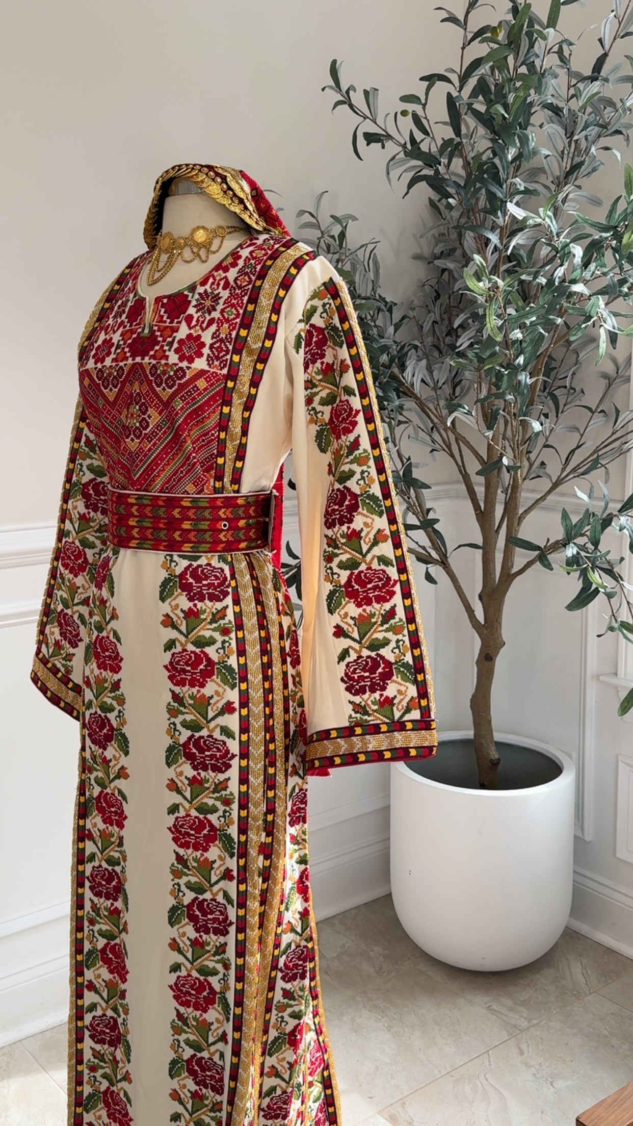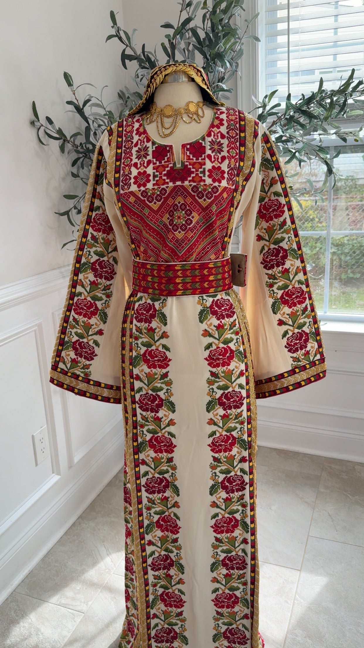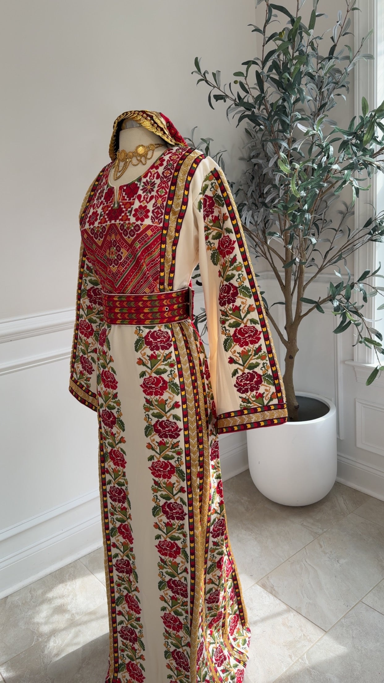 Our Newest Ward Al Juri - Floral heavily embroidered Thobe with added Sabayel Kharaz (Rhinestones)