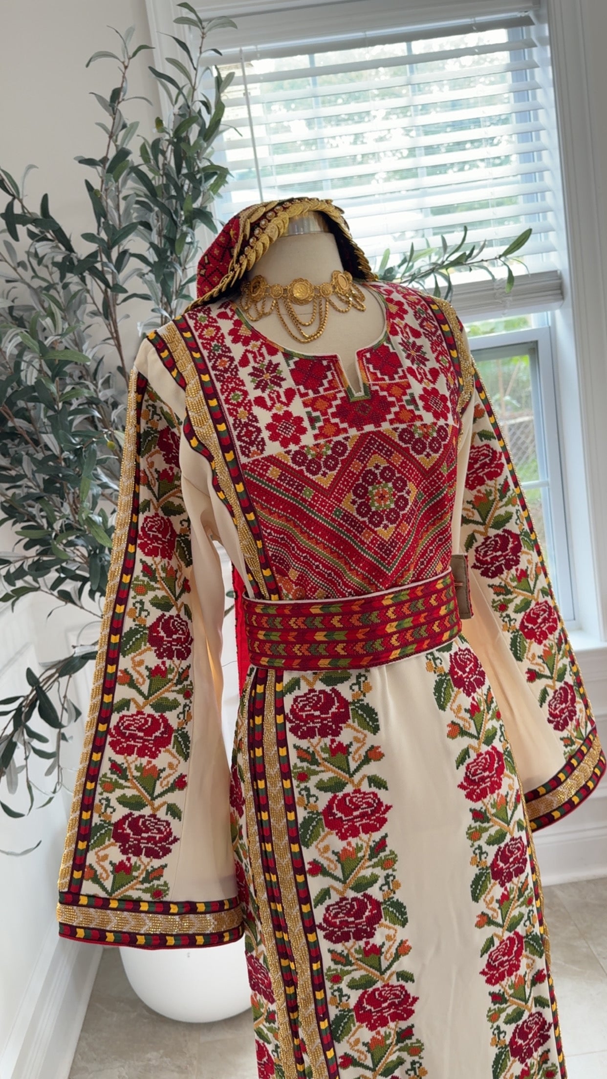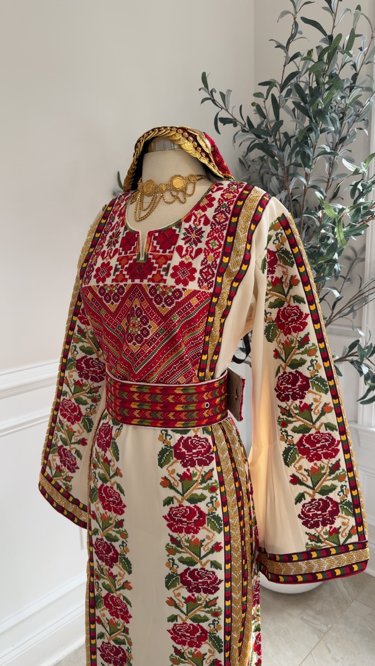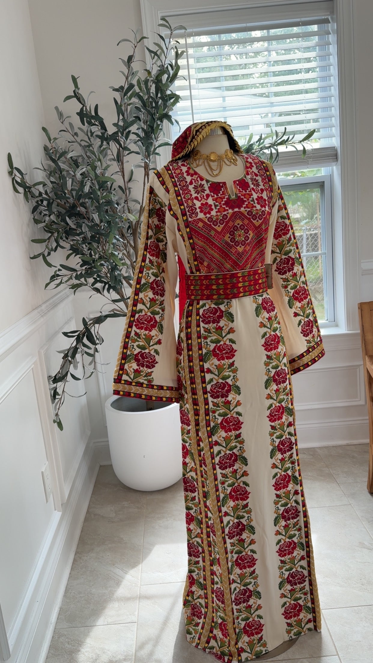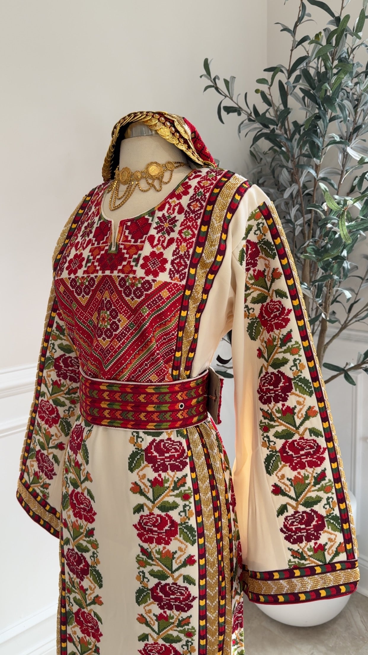 Our Newest Ward Al Juri - Floral heavily embroidered Thobe with added Sabayel Kharaz (Rhinestones)
