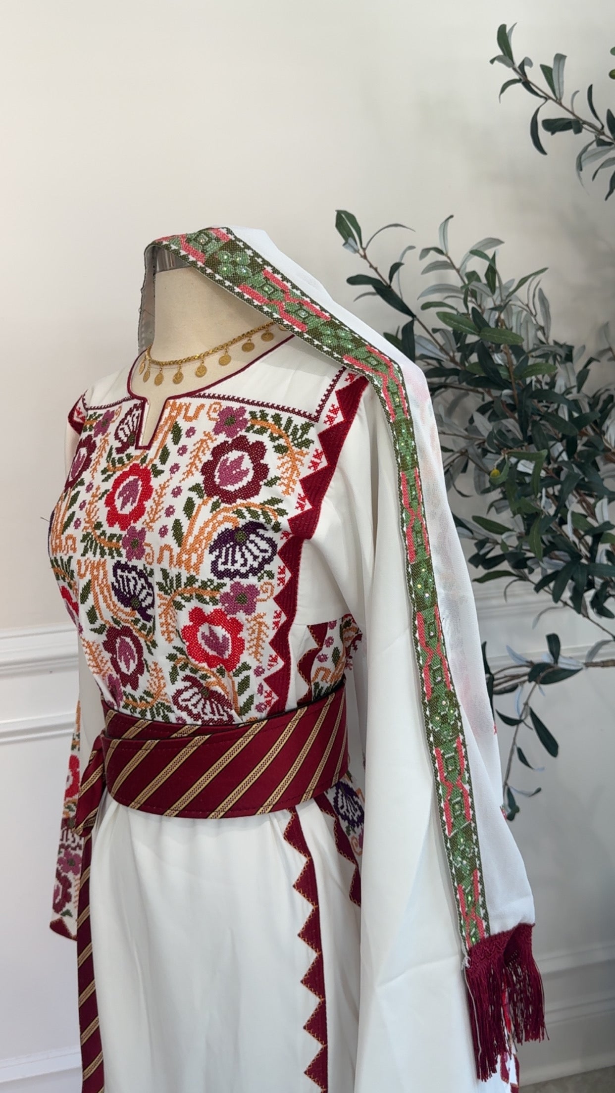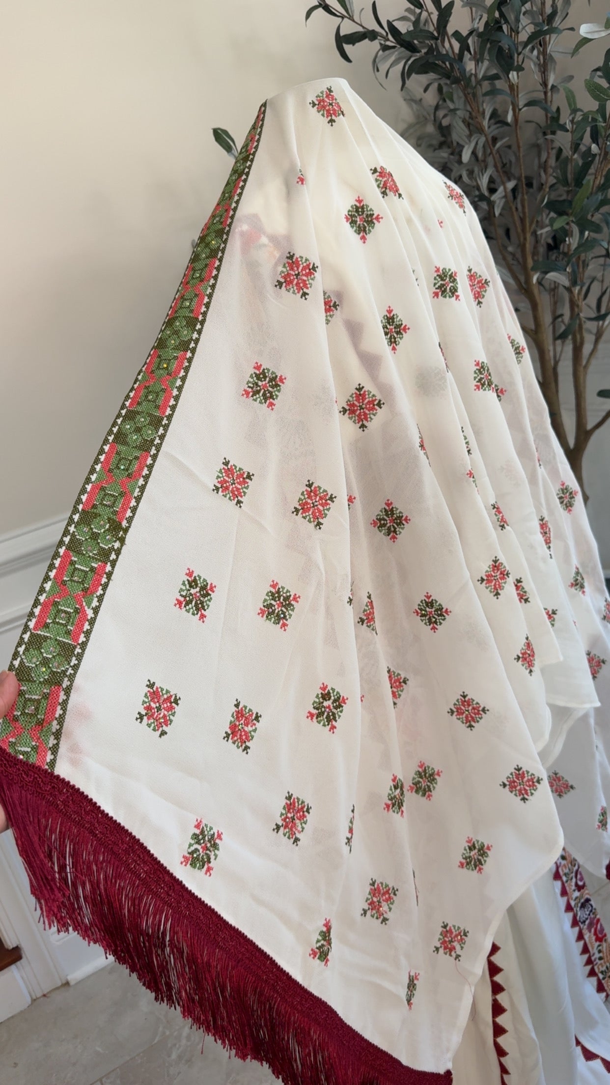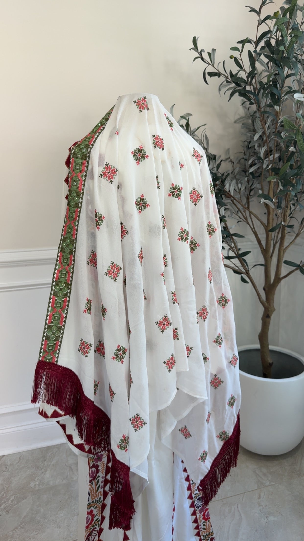 New embroidered white chiffons khirka with Maroon Hadab