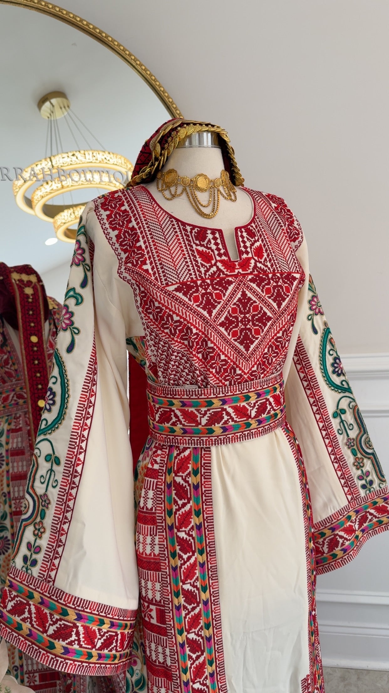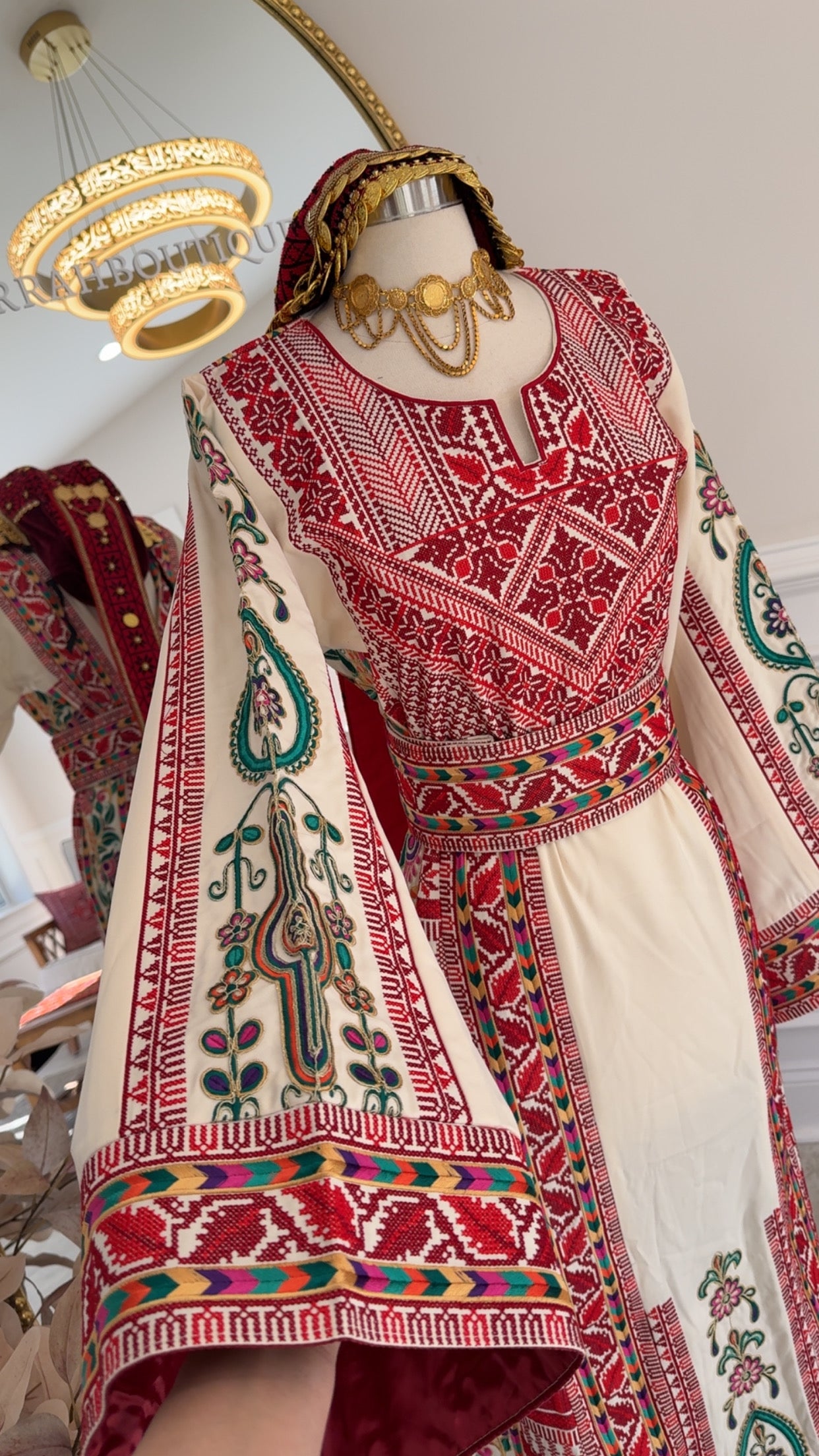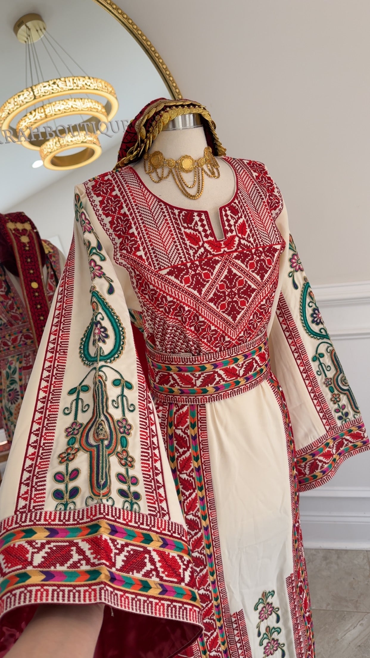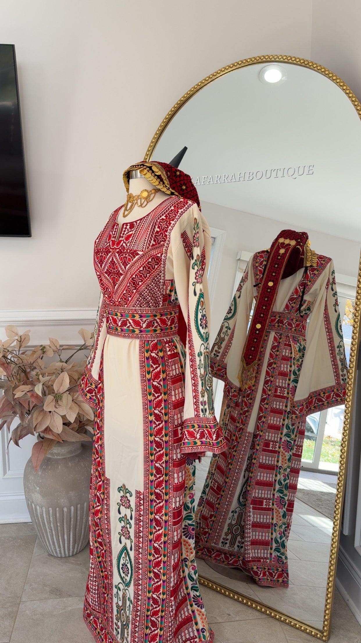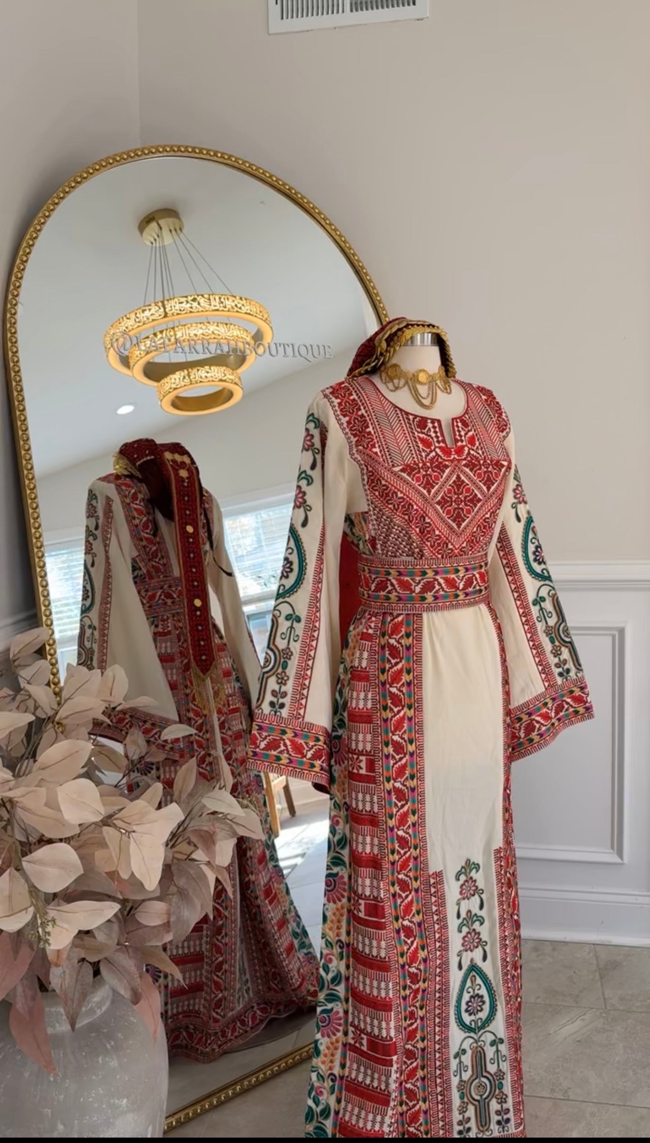 Beautiful New Beige heavily embroidered Thobe with peacock inspired embroidery design