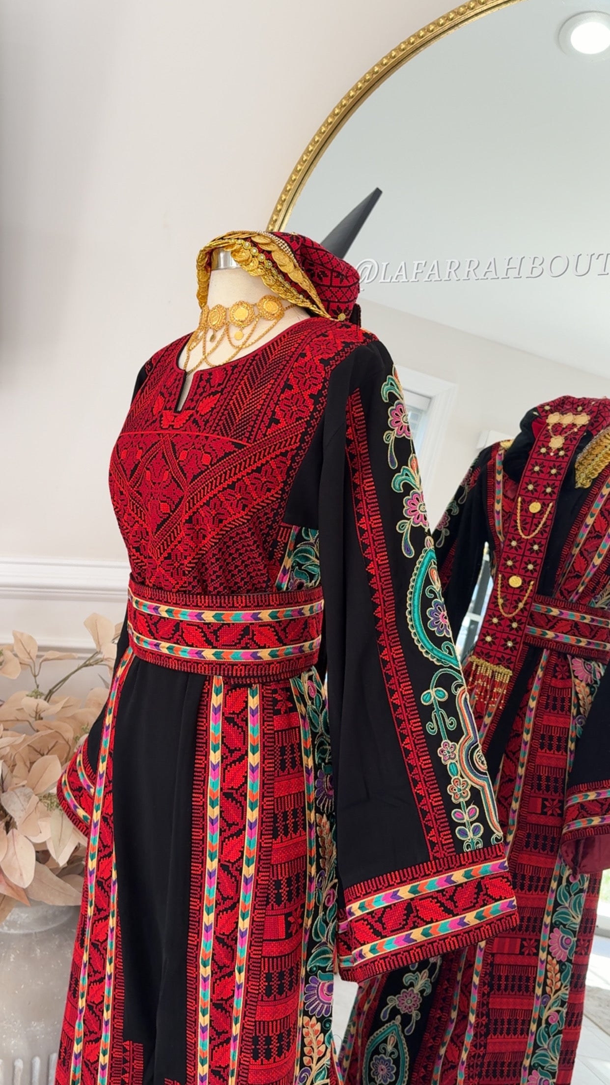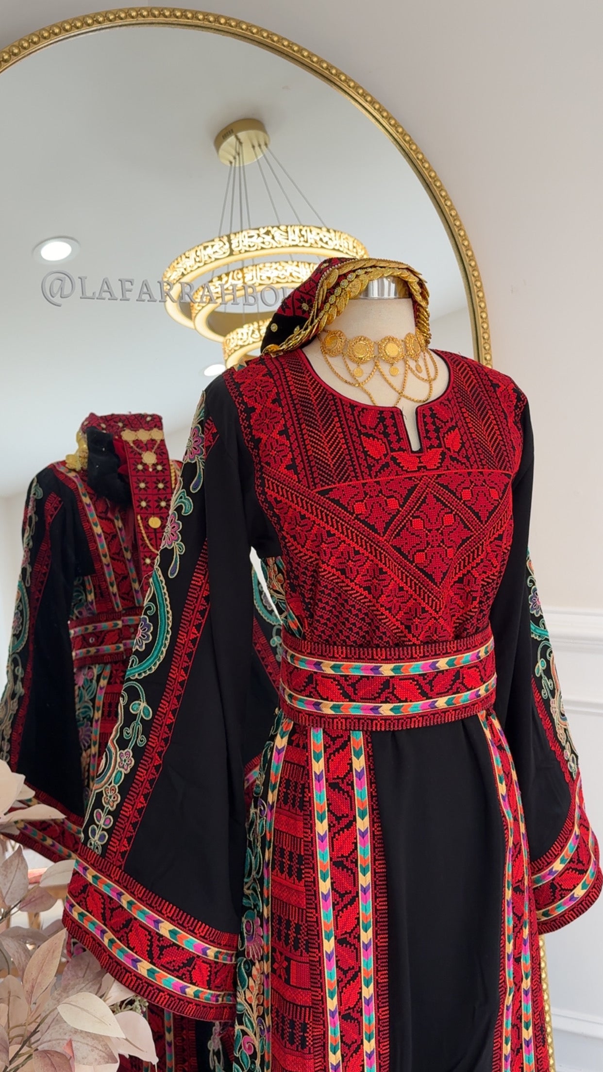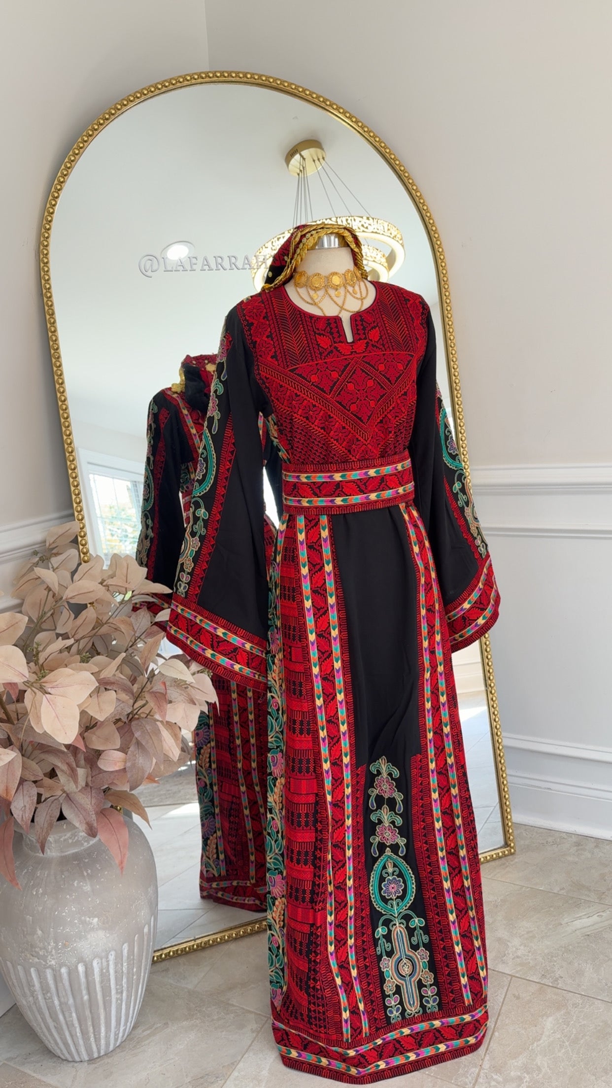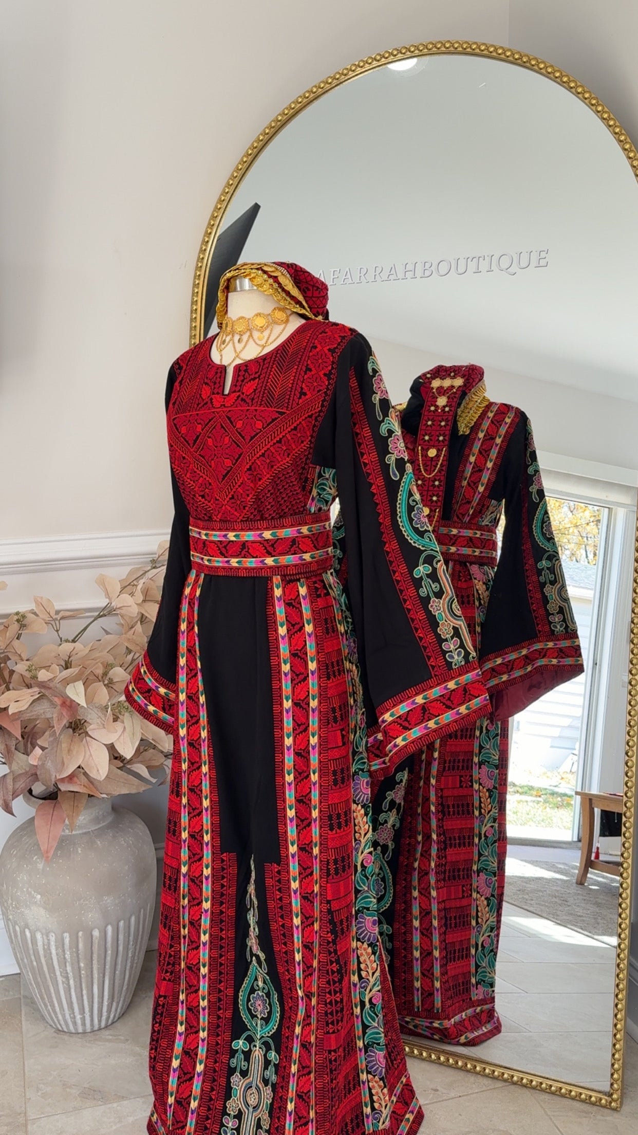 Beautiful New Black heavily embroidered Thobe with Peacock inspired embroidery design